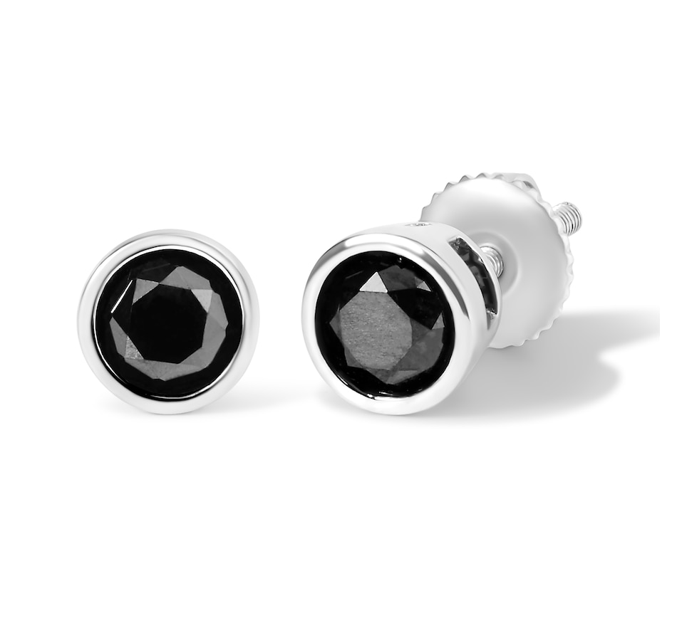 .925 Sterling Silver 3.00 Cttw Round Brilliant-Cut Black Diamond Bezel-Set Stud Earrings with Screw Backs (Fancy Color-Enhanced, I2-I3 Clarity)