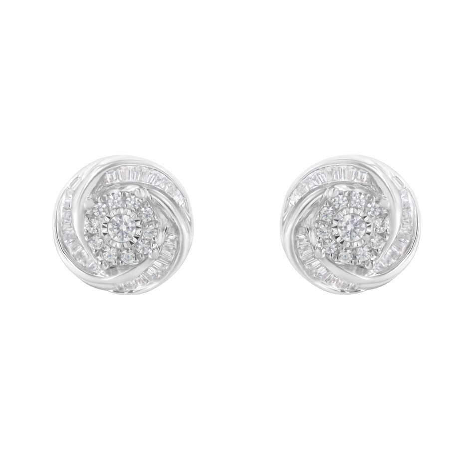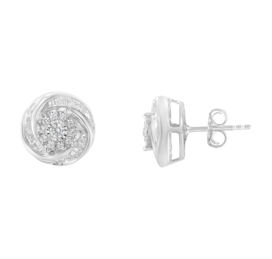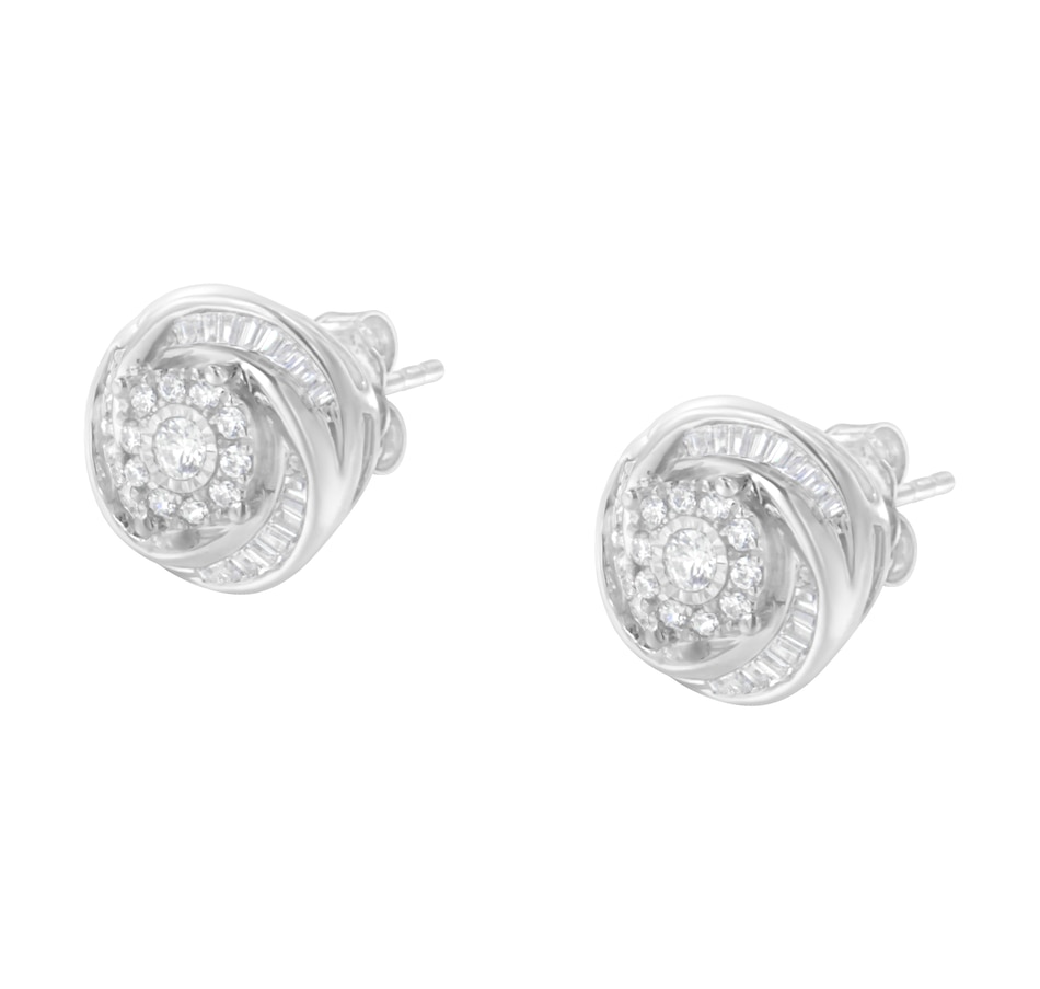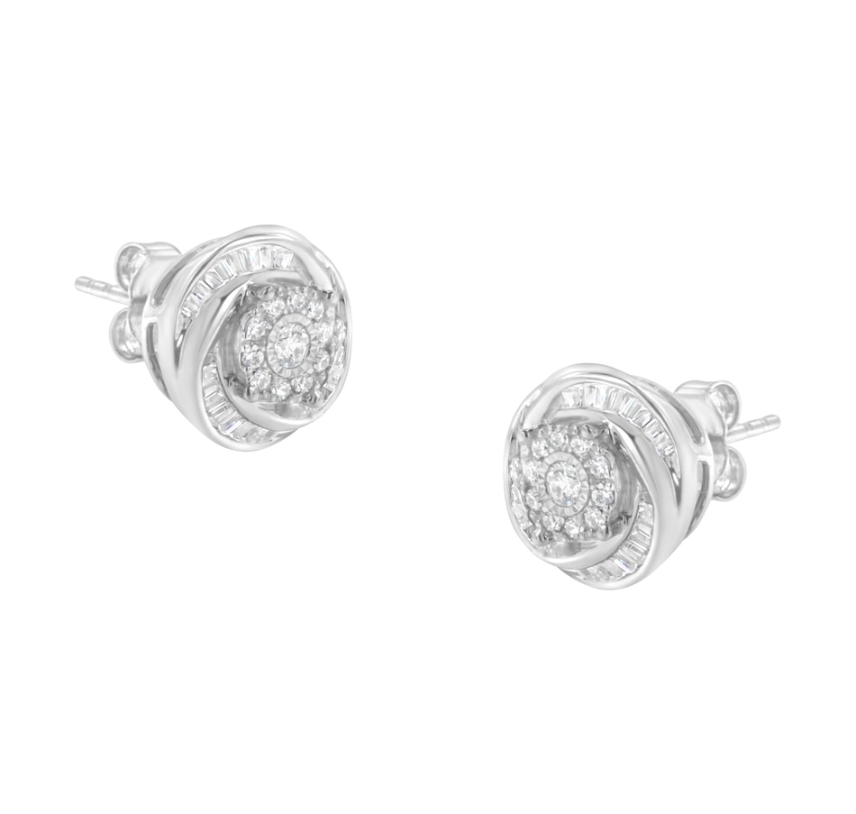 .925 Sterling Silver 3/4 Cttw Round and Baguette-Cut Diamond Love Knot Stud Earring (I-J Color, I2-I3 Clarity)
