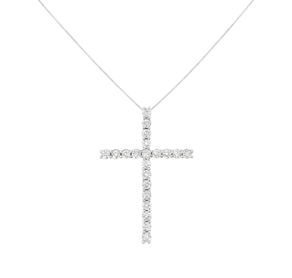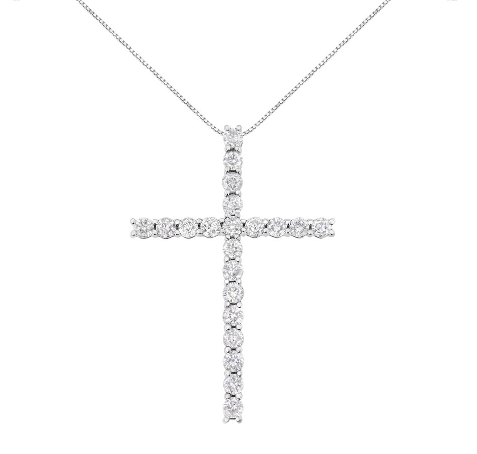 This beautiful piece of jewelry is not only a symbol of devotion and faith but also a true work of art. This gorgeous .925 sterling silver pendant necklace features round, brilliant cut diamonds in a cross design. This diamond cross pendant comes with a matching box chain necklace with a spring ring clasp. The contemporary yet classic 18” box chain complements any neckline beautifully. This authentic design is crafted of real 92.5% sterling silver that has been electro-coated with genuine rhodium (a platinum-family metal), ensuring it will keep a tarnish-free shine for years to come. Whether worn for daytime glamour or evening sparkle, this necklace is gorgeously versatile. It's a classic and feminine piece she'll want to show off every day. A brilliant beacon of faith and hope, our stunning Sterling Silver Diamond Cross Pendant Necklace has been designed to be a dazzling reminder of optimism and confidence to anyone who wears it.
