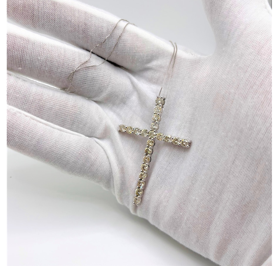 .925 Sterling Silver 4.0 Cttw Diamond 2-1/4" Cross Pendant with Box Chain Necklace (I-J Color, I1-I2 Clarity) - 18"