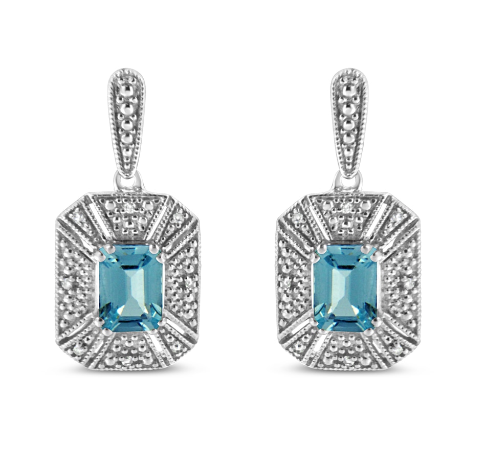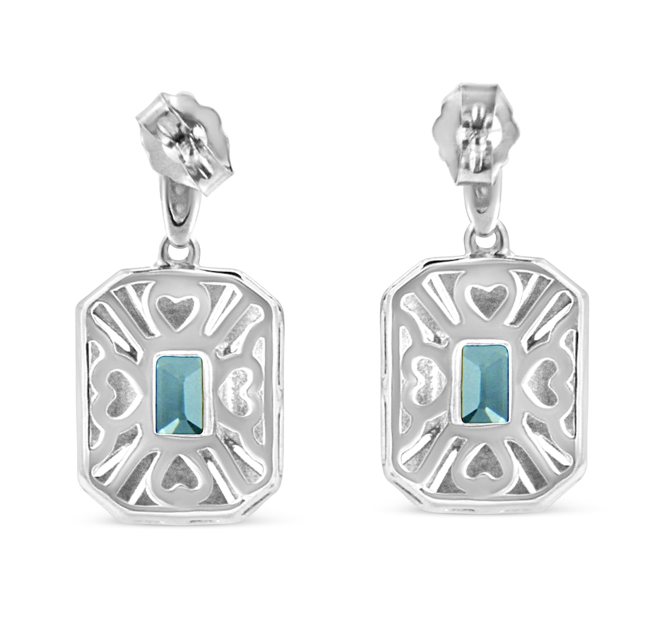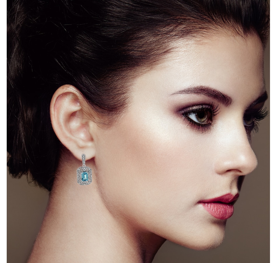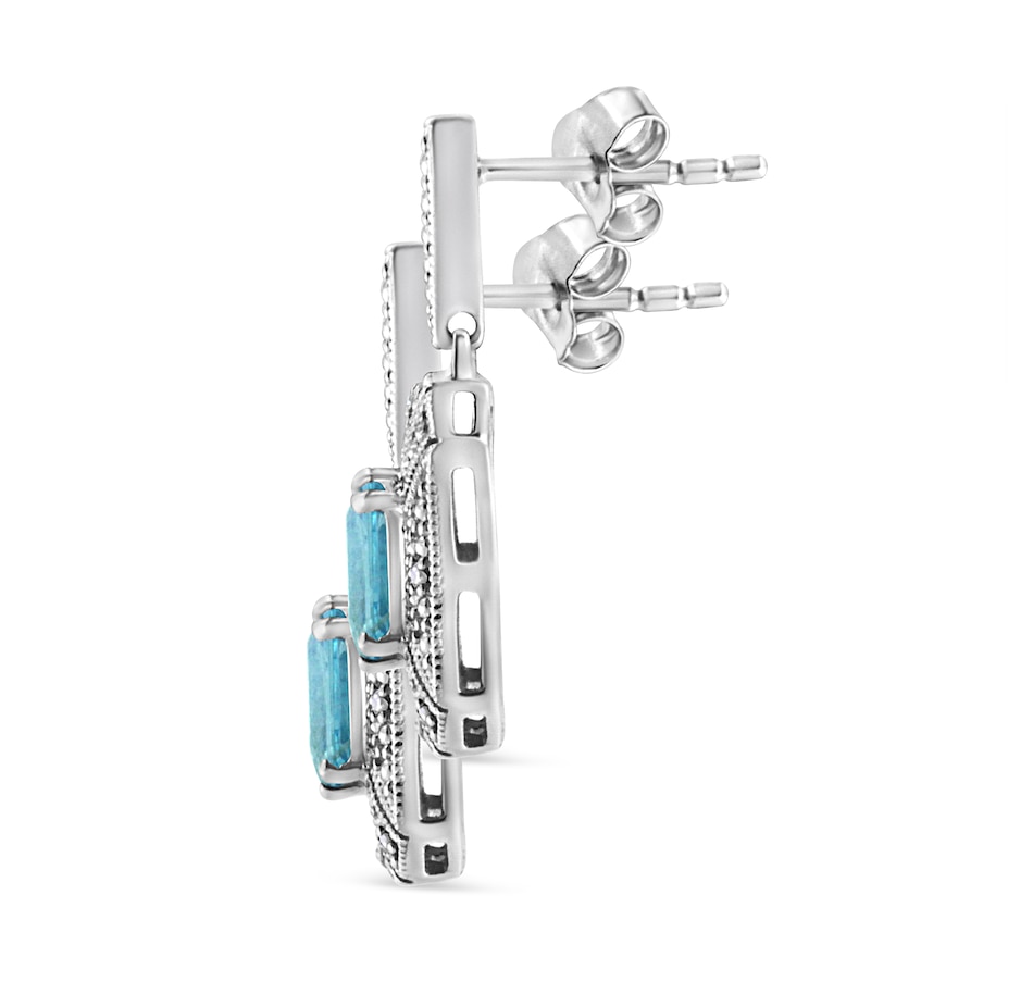 You won't regret adding these show stopper art deco drop and dangle .925 sterling silver earrings to your collection! An intricate design of silver beads surround a drop dead gorgeous 7x5MM emerald shape blue topaz at the center of each earring. Wear this to any formal occasion and instantly elevate any outfit you pair it with.