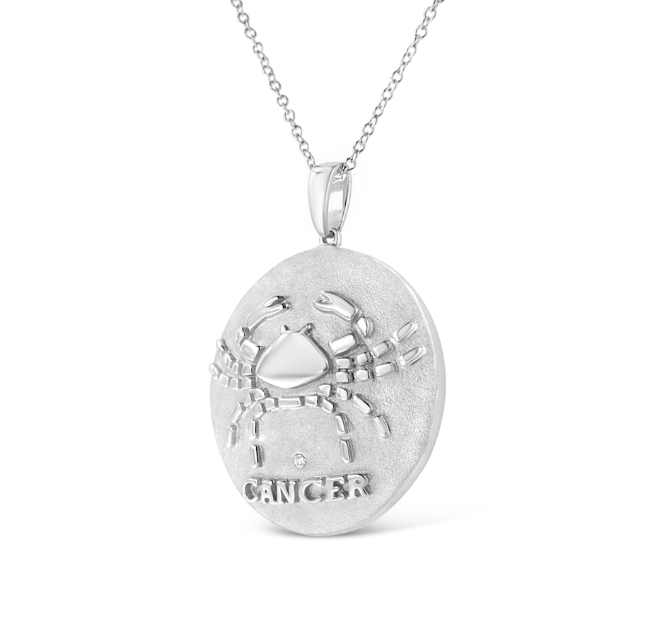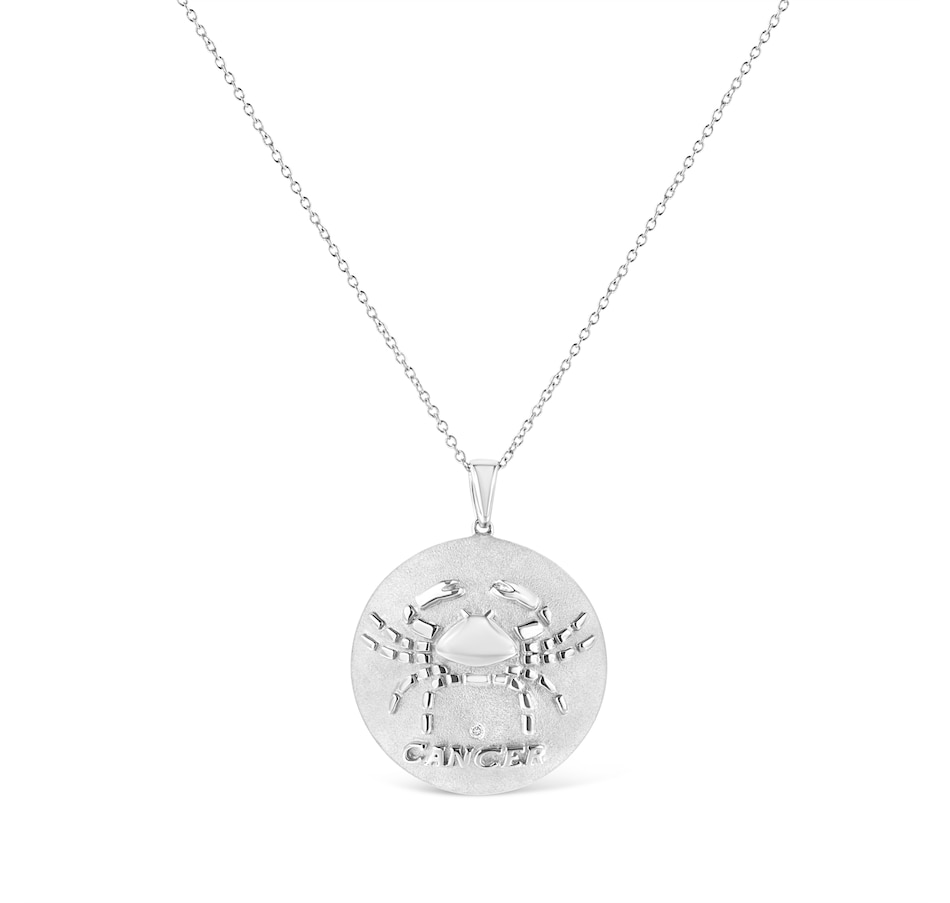 It's her birthday and she's a Cancer and believes in astrology also, so what you are waiting for just gift this meaningful Zodiac Pendant a stylish present for her. Rendered in luminous sterling silver and studded with a dazzling icy white round cut diamond. This meaningful zodiac pendant will hold her secret safe and dangles from a cable chain.