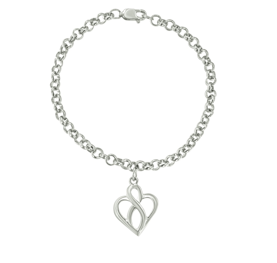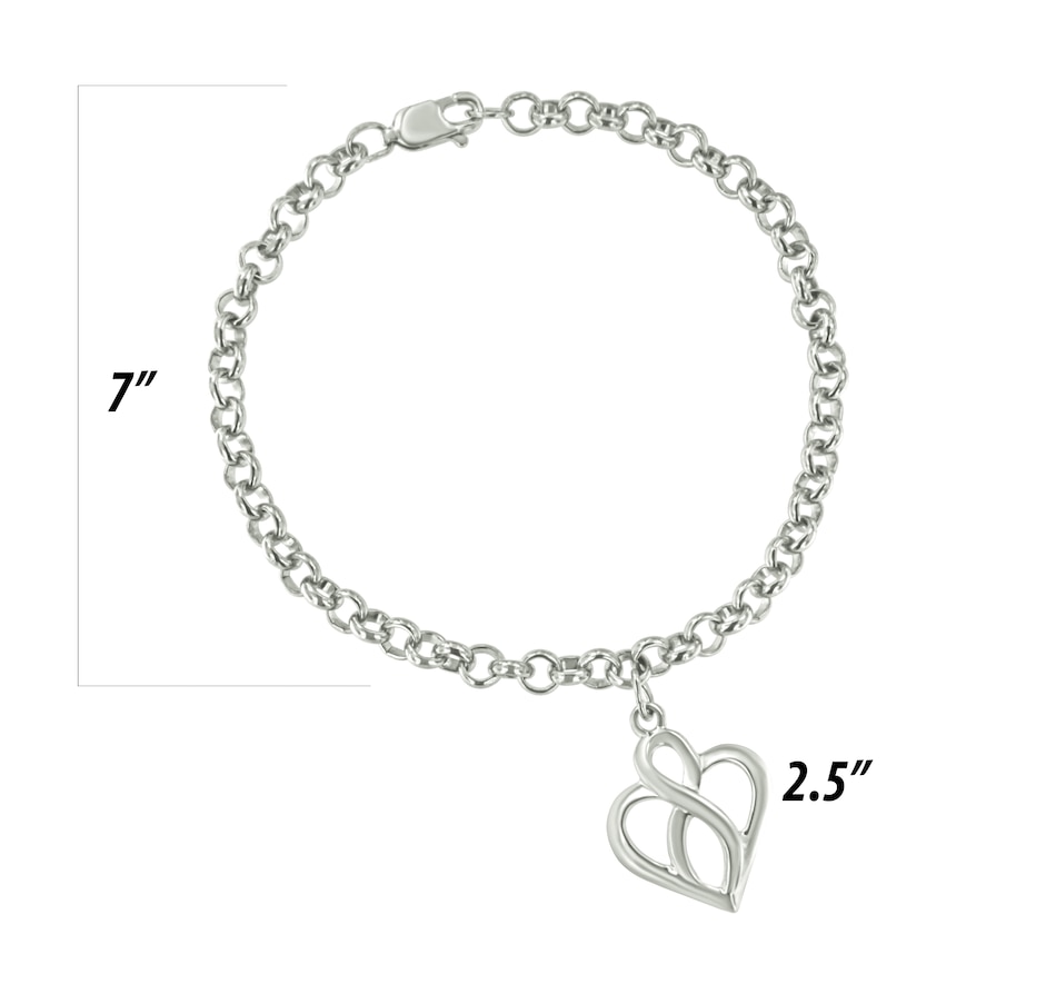 .925 Sterling Silver Open Heart with Center Vertical Infinity Chain Charm Bracelet - Size 7"
