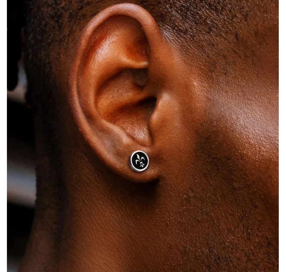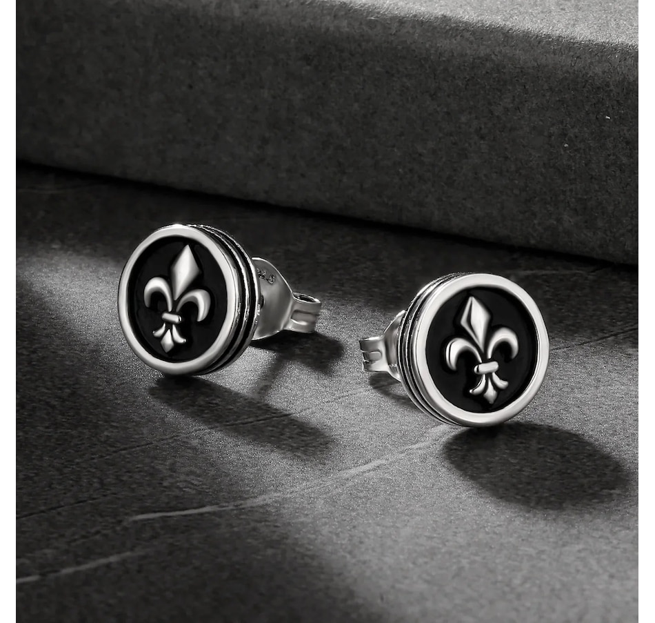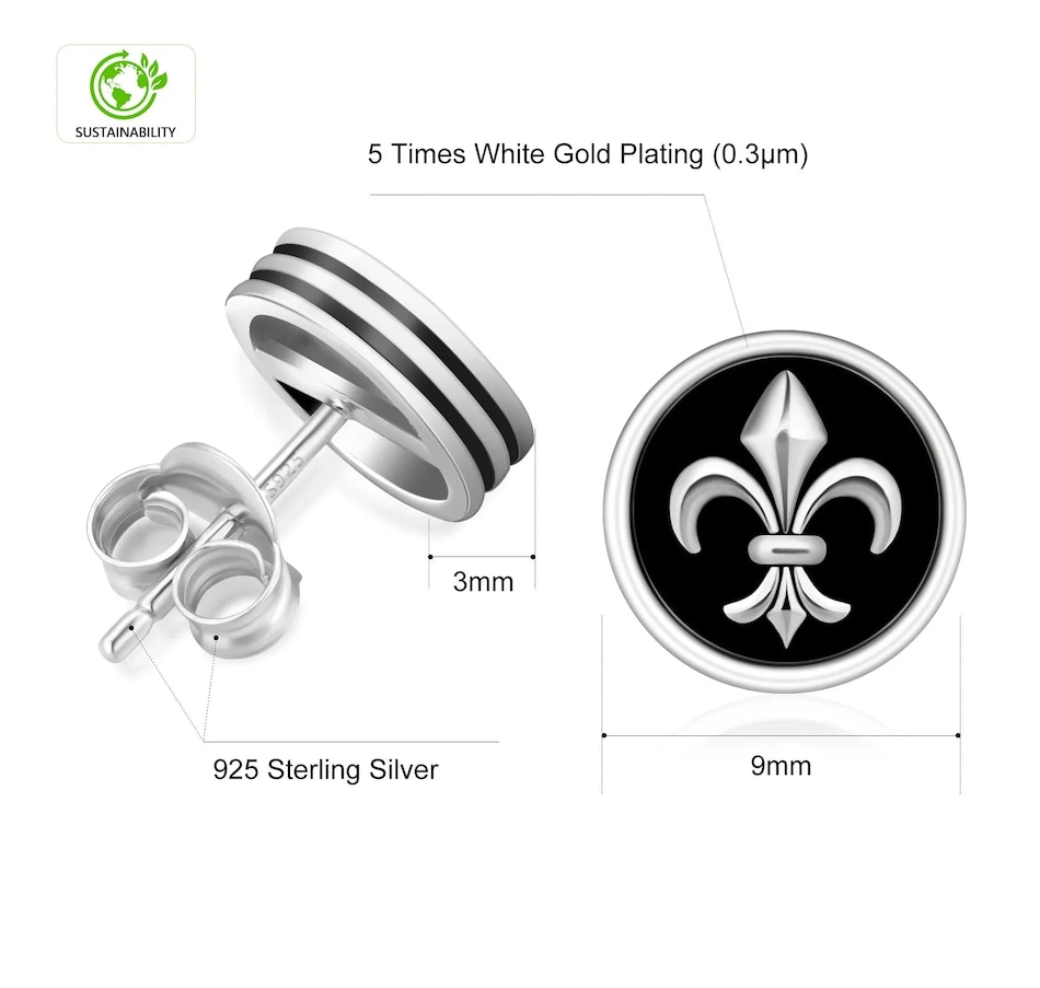 Get yourself some edgy elegance with our 9mm Black Stud Earrings featuring a Fleur-de-lis Lily flower design. These studs are perfect for adding a touch of sophistication to any outfit, while still keeping it cool and quirky. Embrace your inner rebel with this unique accessory.925 sterling silver with 5 times gold platingSafe for all skin typesHand-selected 5A quality stoneWon’t turn skin green No color fadingDetailsMaterial925 sterling silverFinish5 times plating for an everlasting shineStone TypeCubic Zirconia with 5A qualityStone SettingMicro PaveDiameter9mmWeight3.6gPackage ContentA pair of earrings, a gift box, a warranty card