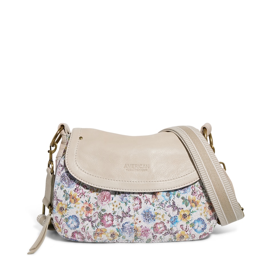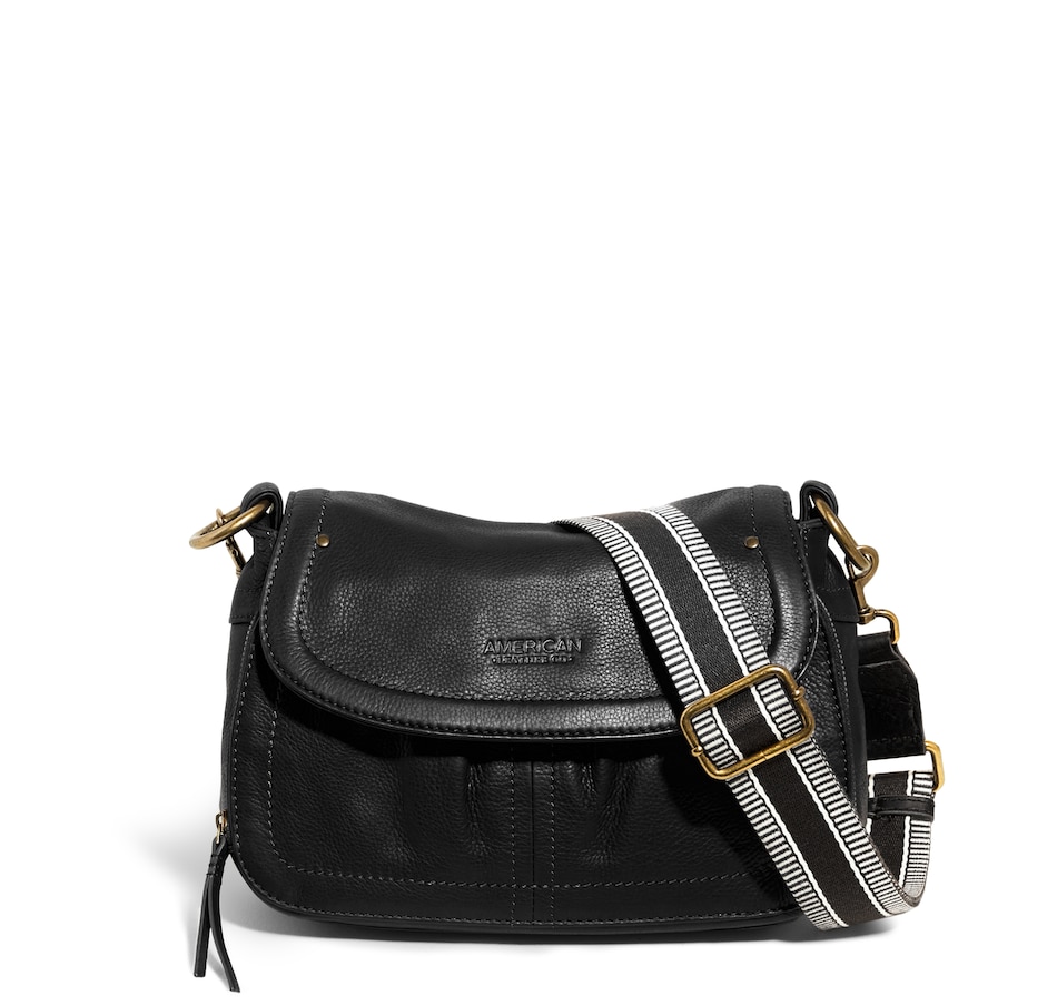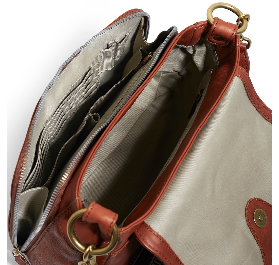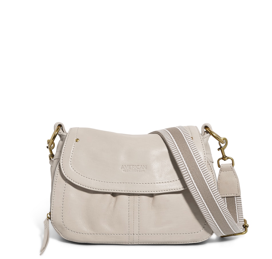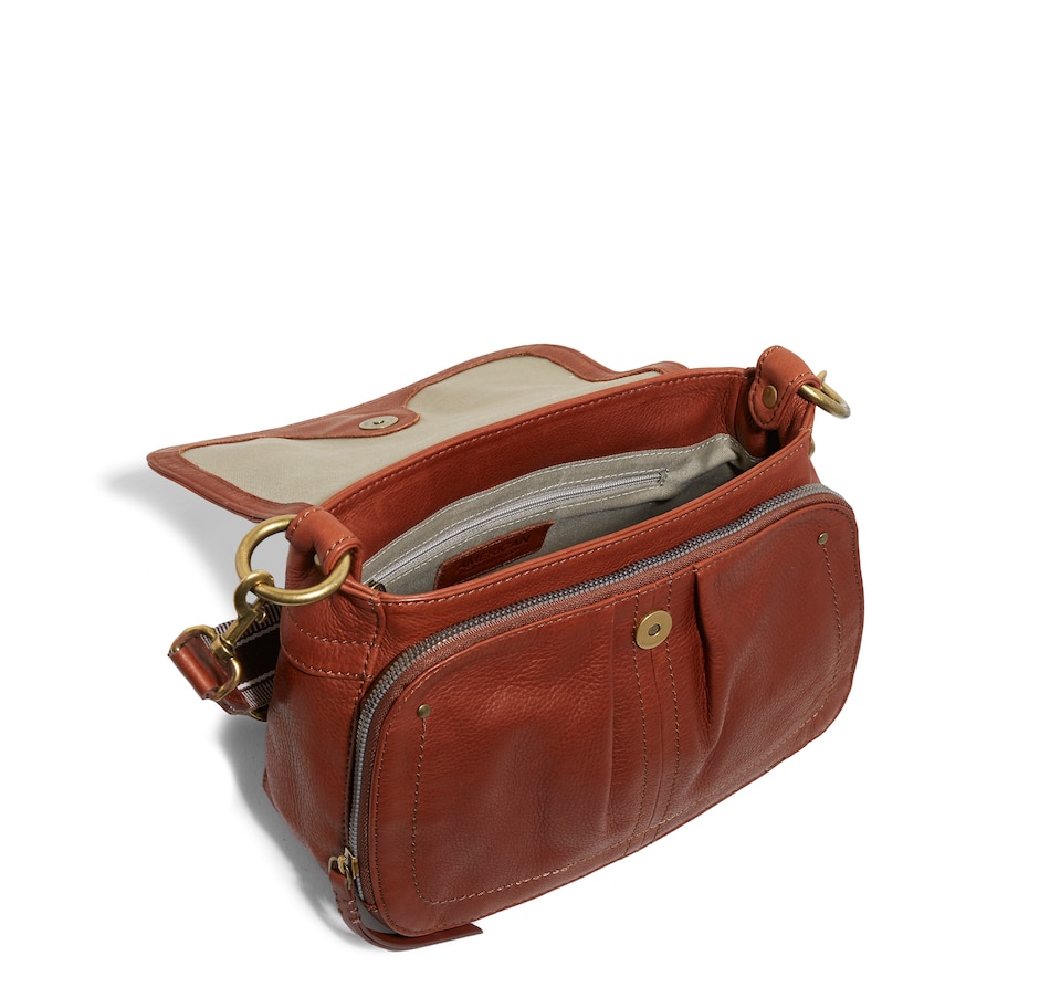 • Exterior: adjustable and removeable crossbody webbed strap, 2 slip pockets, magnet snap at main entry