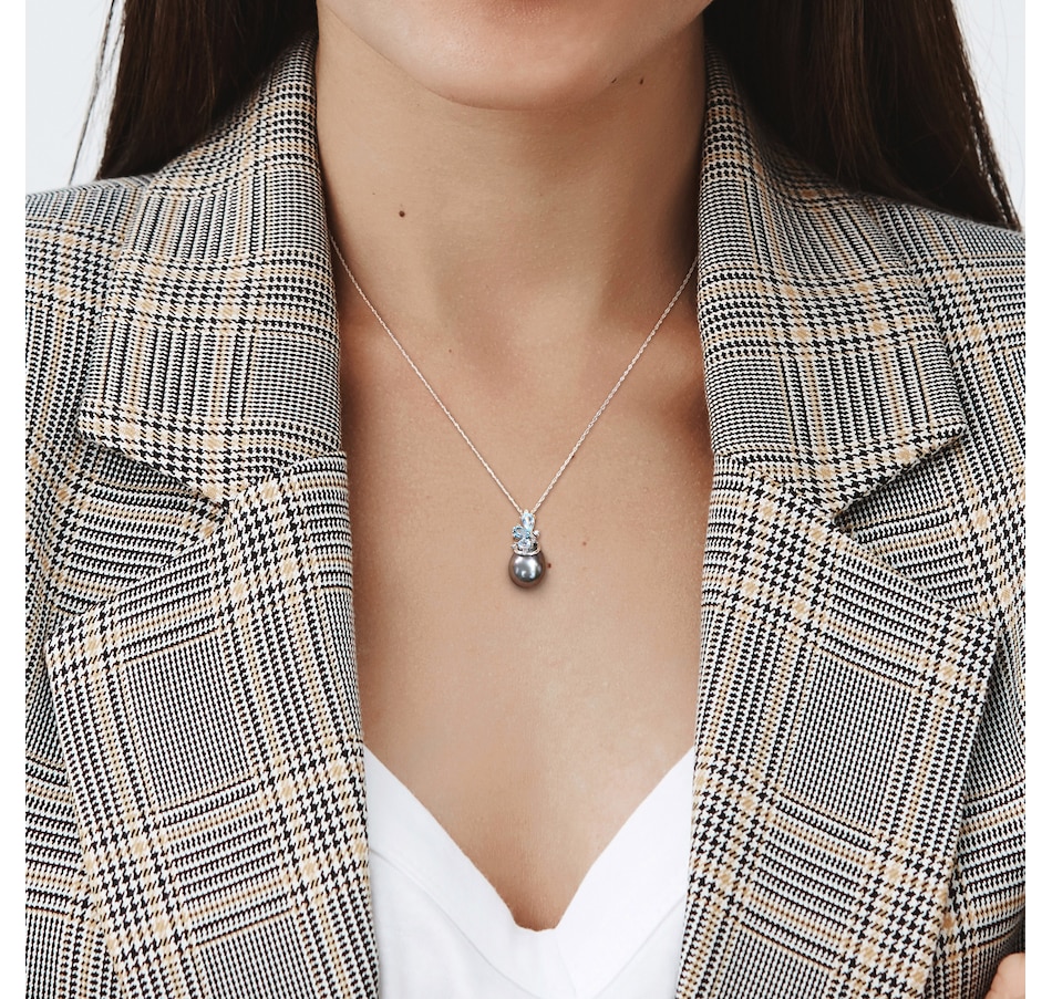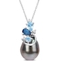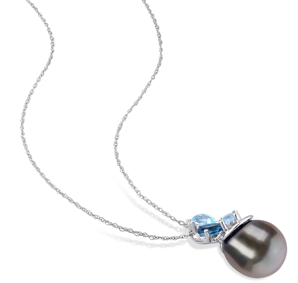 14K White Gold 9-10mm Black Tahitian Cultured Pearl & Gemstone Pendant with Chain