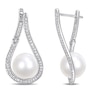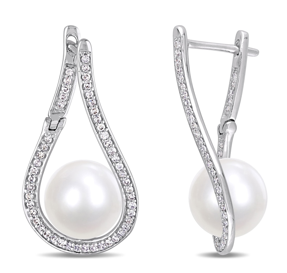 14K White Gold 9-9.5mm Freshwater Cultured Pearl & Diamond Cuff Earrings