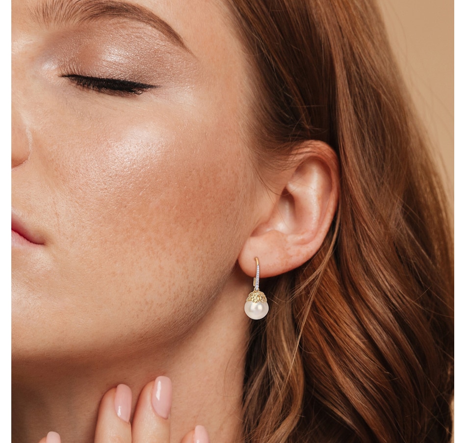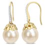 14K Yellow Gold 9-10mm Cultured White South Sea Pearl & Diamond Earrings
