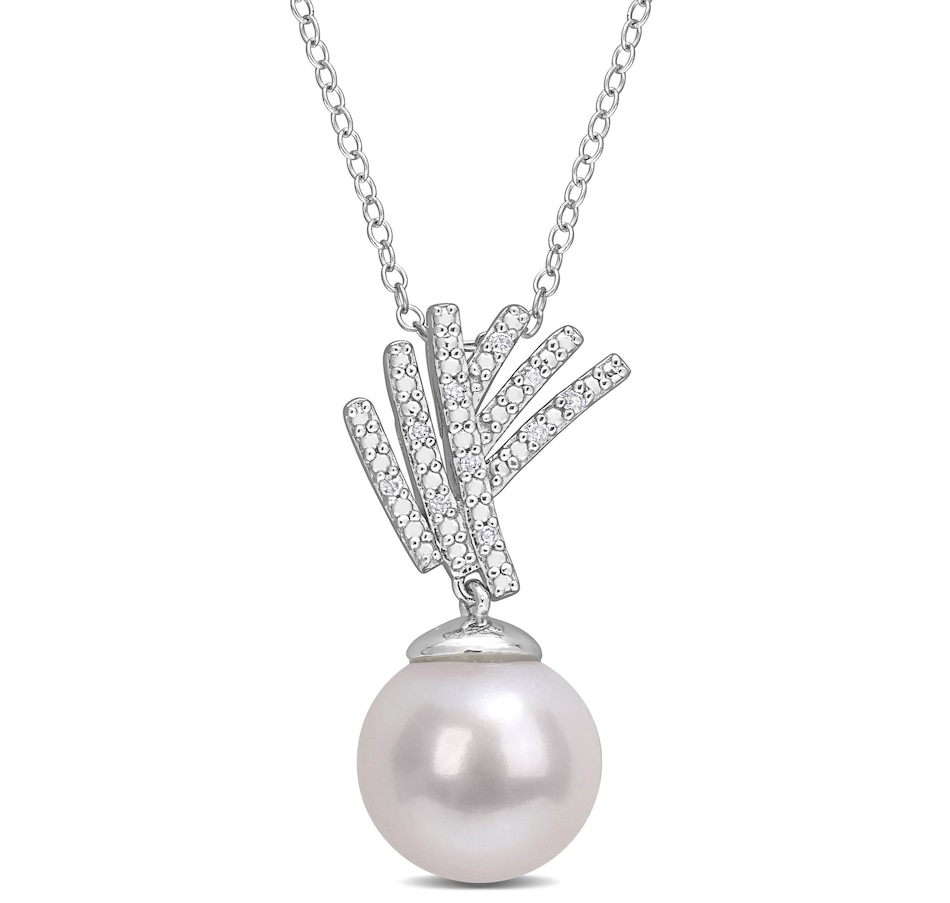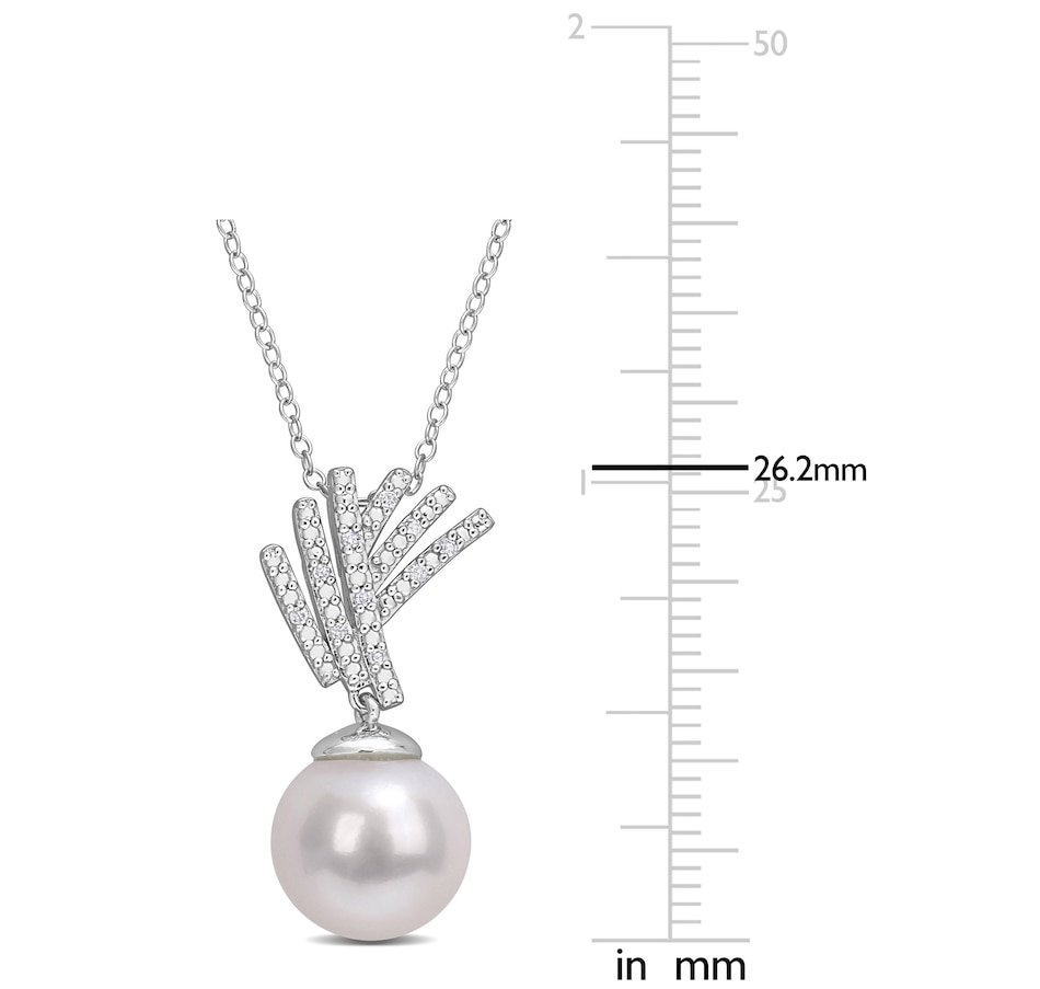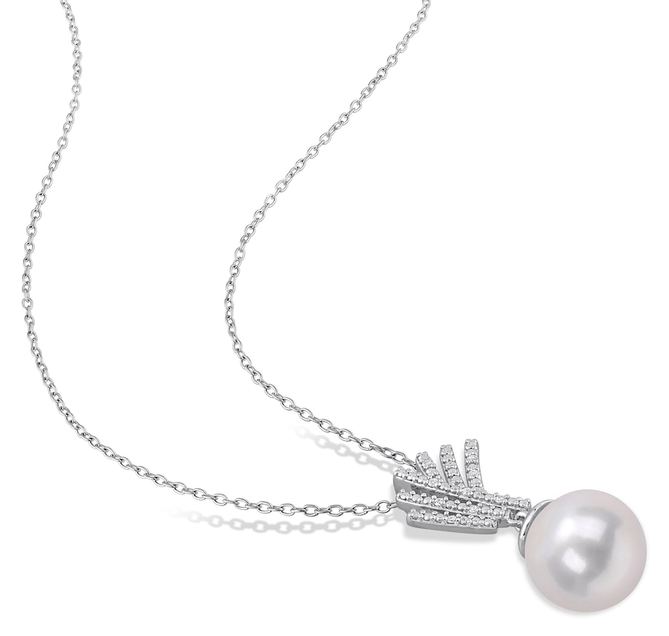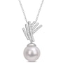 Sterling Silver 11-12mm Freshwater Cultured Pearl & Diamond Pendant with Chain