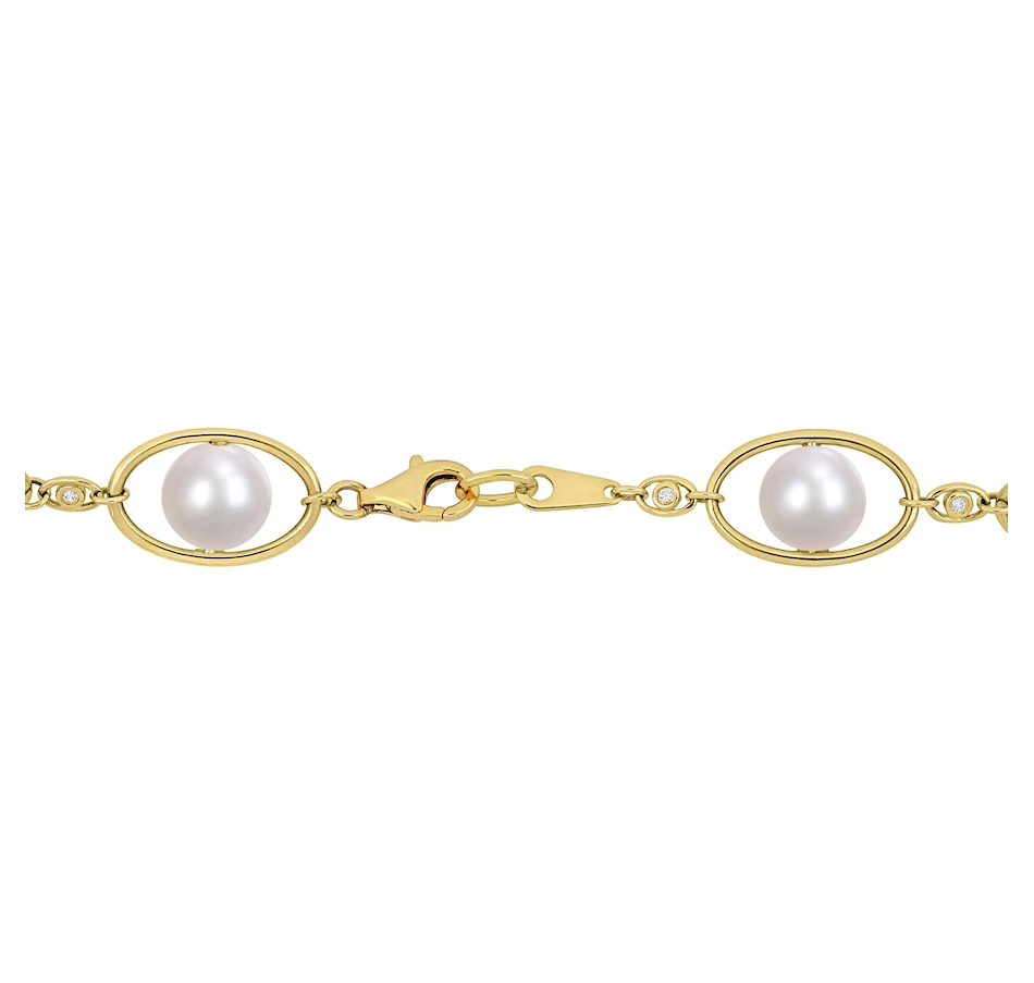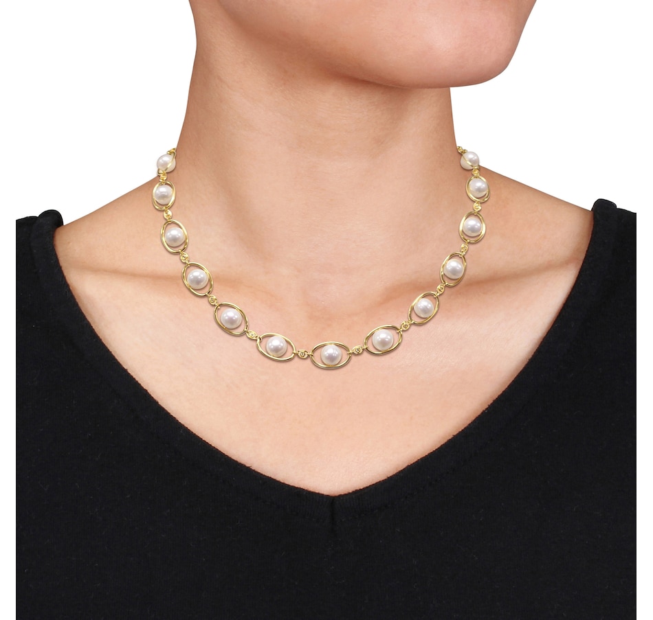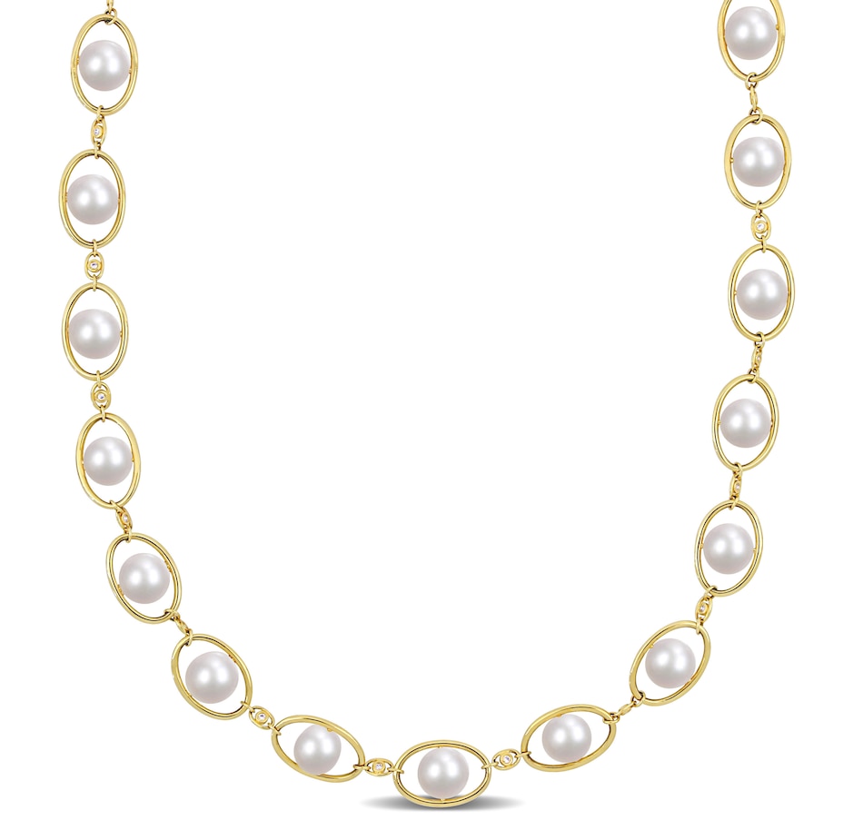 Sterling Silver & 18K Yellow Gold Plate 8-8.5mm Cultured Freshwater Pearl & Cubic Zirconia Necklace