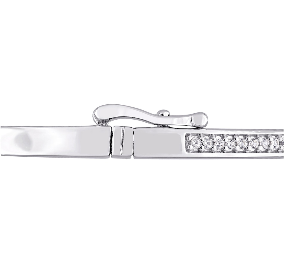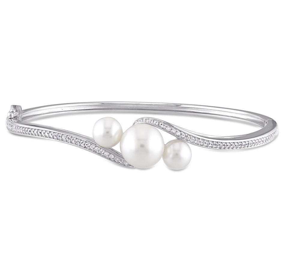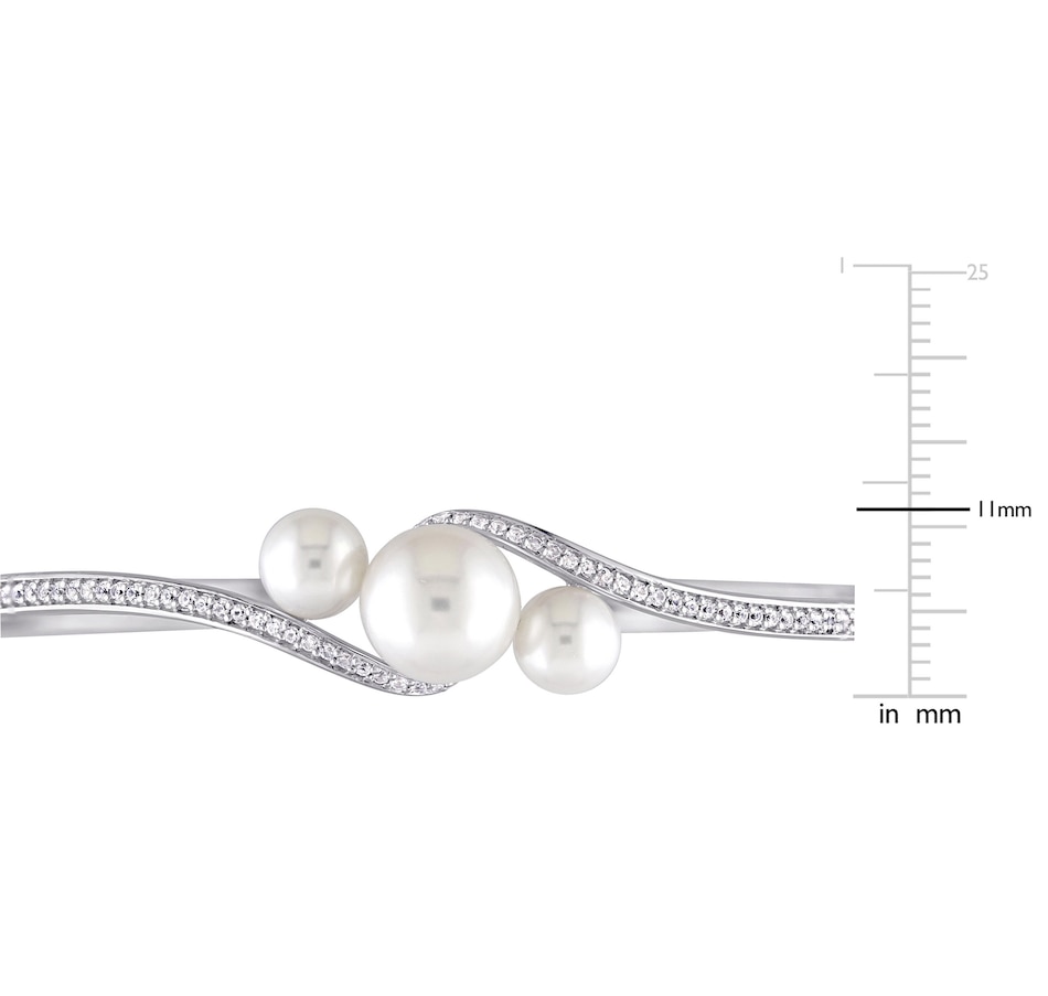 Sterling Silver 6-9.5mm Freshwater Cultured Pearl & Created White Sapphire Bangle