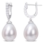 Sterling Silver 8.5-9mm Freshwater Cultured Pearl & Cubic Zirconia Drop Earrings