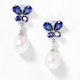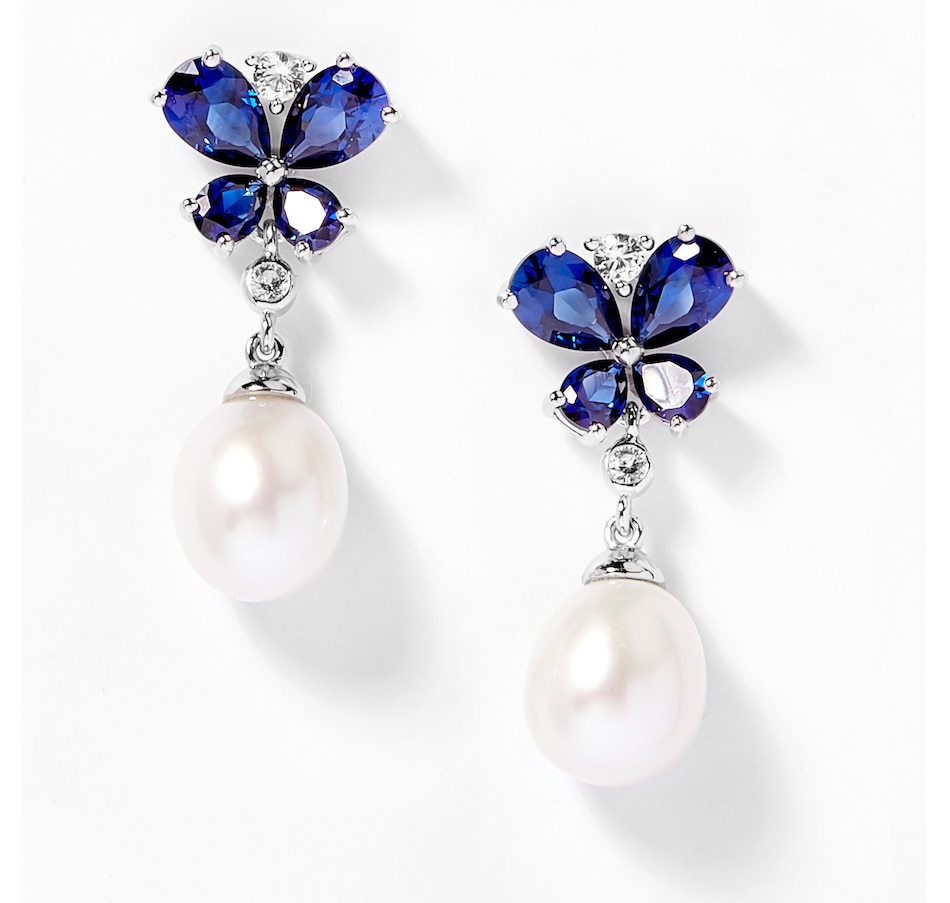 Sterling Silver 8-8.5mm Cultured Freshwater Pearl & Sapphire Butterfly Drop Earrings