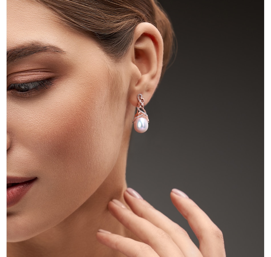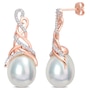 Sterling Silver Rose Gold Plate 12-12.5mm Freshwater Cultured Pearl & Diamond Earrings