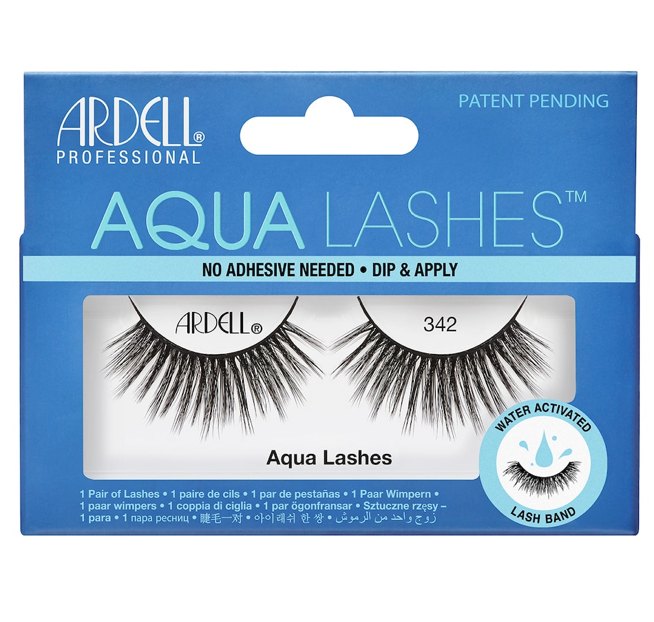 Aqua Lashes - No Adhesive Needed Water Activated Lashes, Aqua Lashes are lined with adhesive that is activated by water. Beautiful, lush styles in natural to dramatic looks. Lashes have tapered tips and a black band mimicking the look of eyeliner.Ingredients: Water (Aqua, Eau), Acacia Senegal Gum, Casein, PVP.Made in China