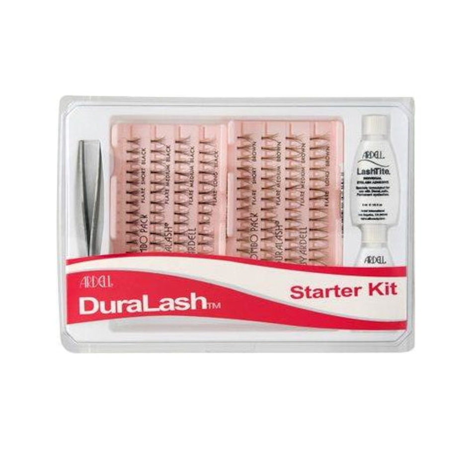 Ardell DuraLash Starter Kit: Adds volume that looks so natural to your lashes Easy to apply, this kit has all you will need Includes: tweezer, eyelash adhesive, eyelash adhesive remover, two combo packs of flare short, medium, and long individual lashes (both in black and brown)