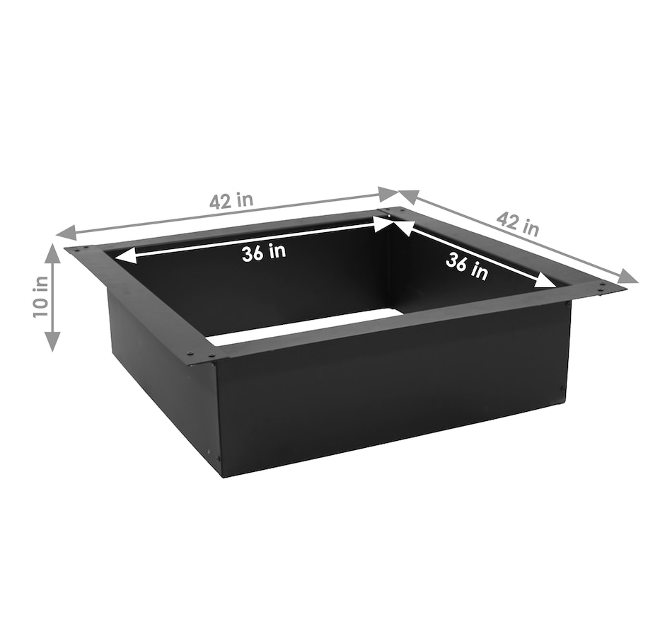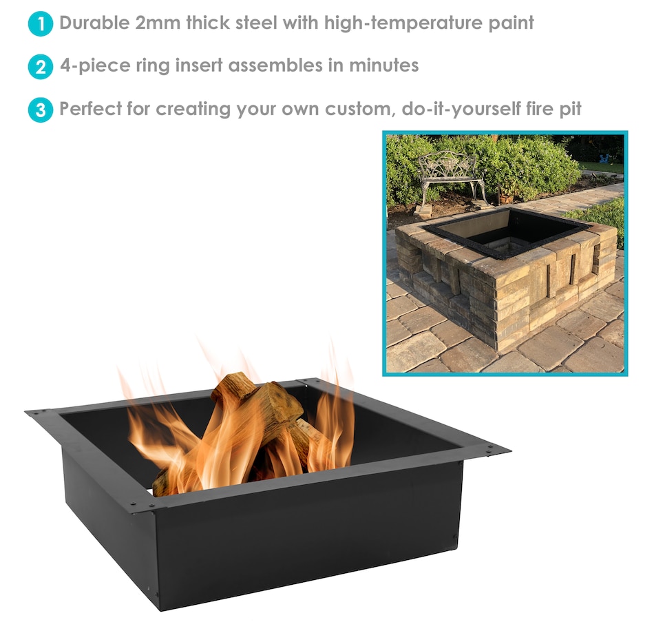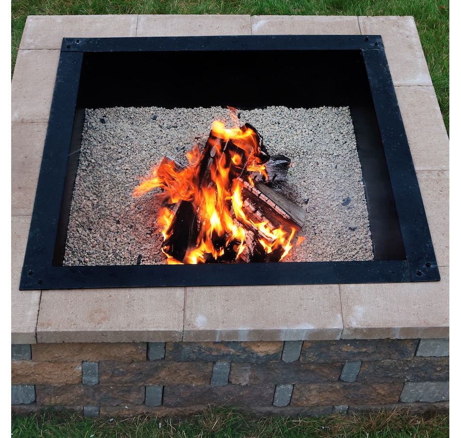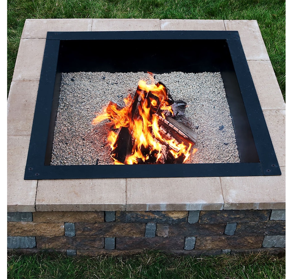 Create a durable and long-lasting fire feature with this square firepit ring insert. Designed for DIY outdoor projects, this firepit insert provides a strong framework for both in-ground and above-ground fire pits. It is constructed from 2mm thick steel for maximum strength and coated with a high-temperature paint to resist heat and weather exposure. The bottomless design allows for natural drainage and airflow, helping maintain clean and consistent fires. It offers a generous burn area while keeping flames safely contained. The liner ships in four interlocking panels that are easy to assemble, making it a reliable foundation for custom-built fire pits. Whether used in a backyard, on a patio, or at a campsite, this firepit ring for outside delivers lasting performance and supports creative fire pit designs with both structure and safety in mind.