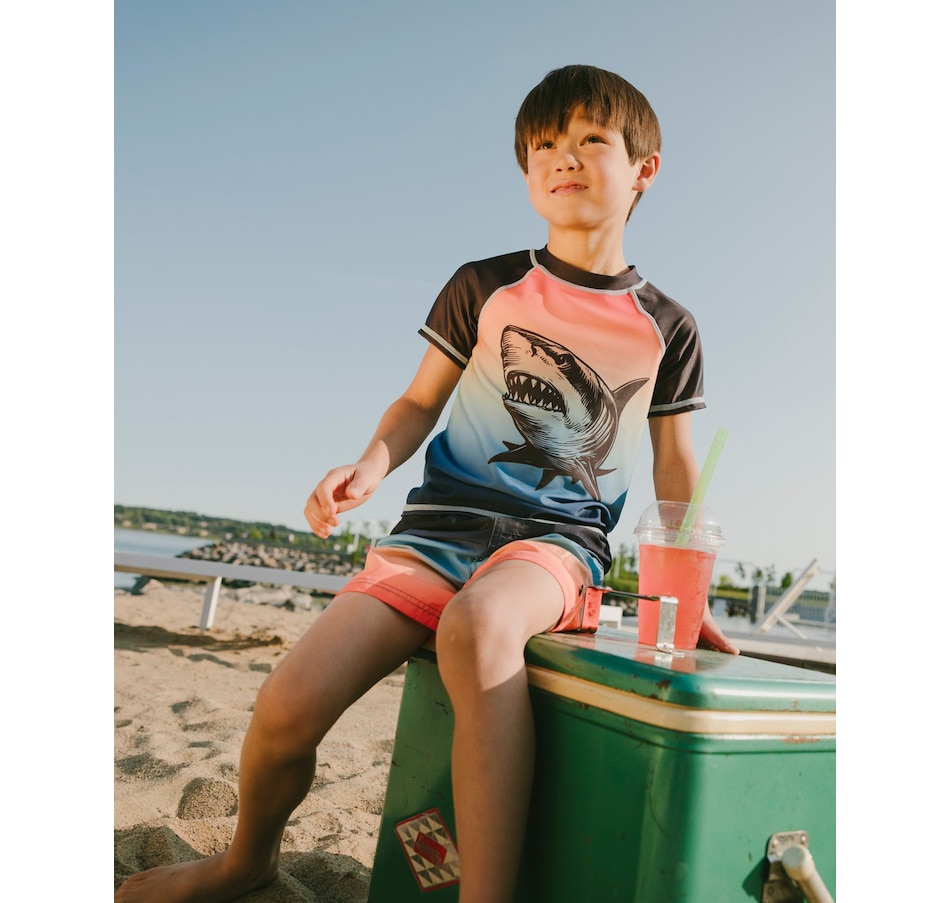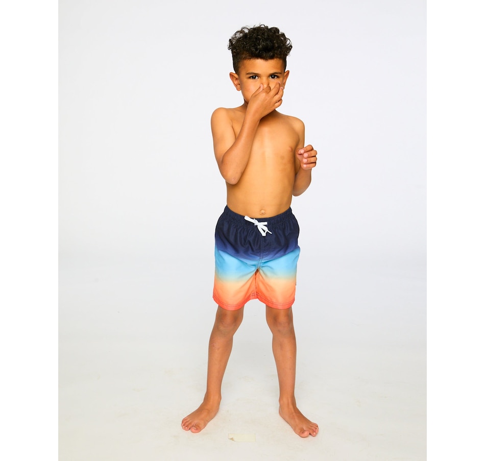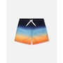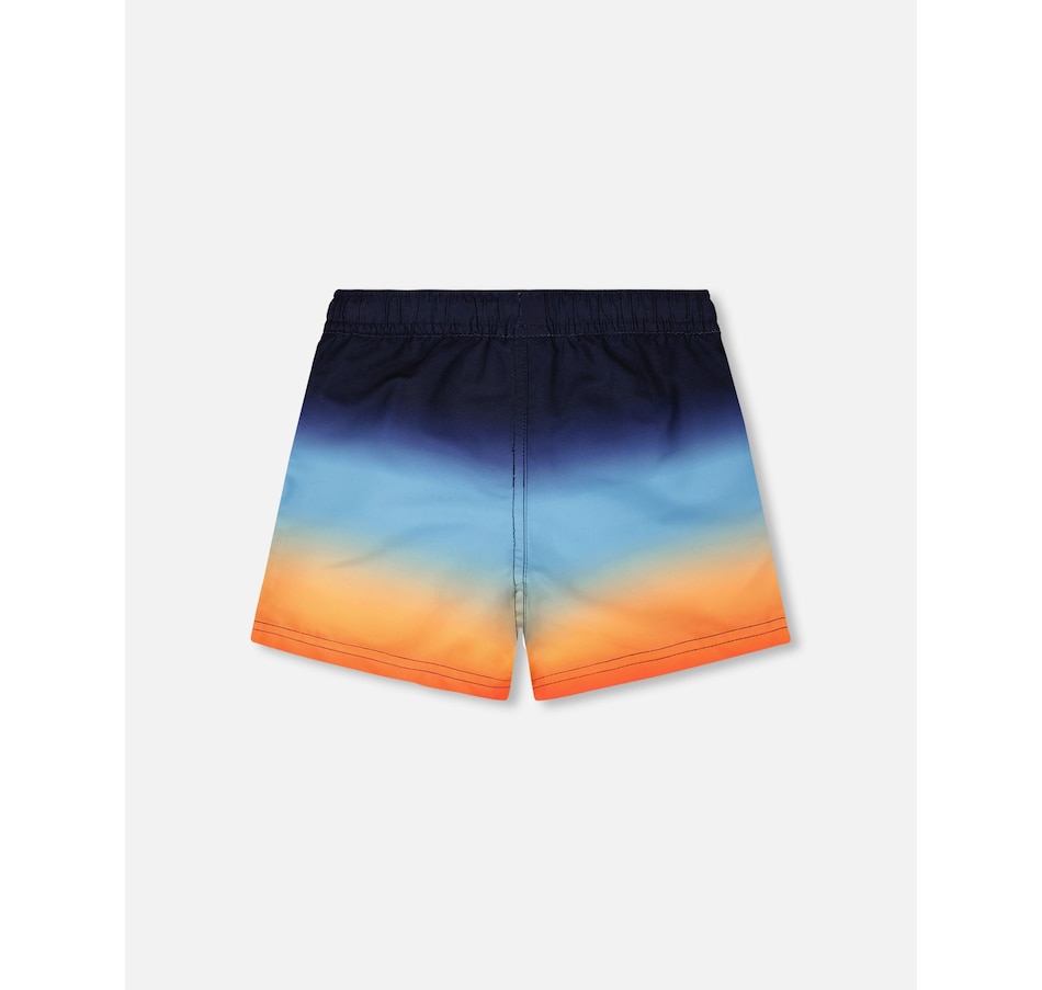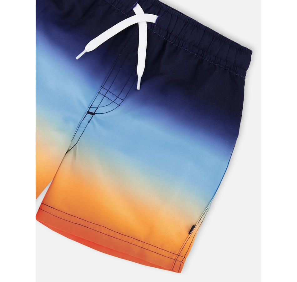 Our swim trunks in blue and orange gradient bring bold summer color to every splash. These above-the-knee swim shorts feature a vibrant ombré effect that shifts from deep blue to bright orange, crafted from lightweight recycled polyester with a breathable mesh lining. Finished with an elastic waist and adjustable drawstring, they combine comfort and style for active beach days.