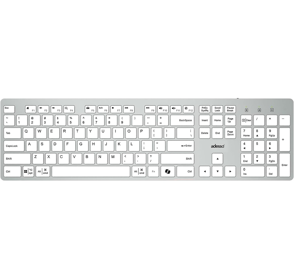 This mechanical keyboard from Adesso is designed with low-profile scissor switch key technology to provide a comfortable, responsive and silent typing experience, which can help reduce typing fatigue during long hours of work. The 112-key layout includes a full number pad, ensuring efficient data entry and streamlined typing for accounting, programming and productivity tasks, plus it features 13 multimedia and internet shortcut keys, including volume, playback and browser navigation—ideal for those who need fast and efficient control of their media.