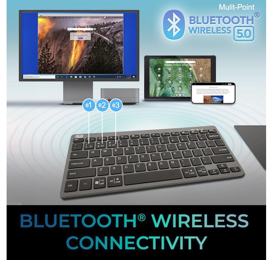 This keyboard from Adesso features scissor switch technology, offering smooth and responsive keystrokes for comfortable usage and a quiet typing experience.