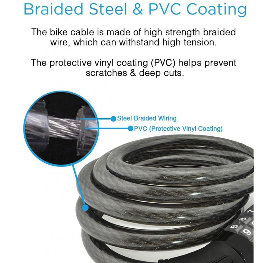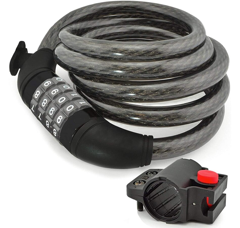 Feel extra secure when leaving your bike unattended with aduro's steel wire combination lock. This 4-digit bike lock is made with braided steel wire, and a protected vinyl coating to ensure robust protection and top-notch durability. This secure lock also boasts a length of 4 feet allowing you to lock up multiple bikes at once, perfect for pitstops during your weekend rides with family or friends. Its self-coiling design makes storage seamless, and it also comes with a mounting bracket to attach directly to your bike, so you don't have to worry about carrying a bag on your rides.