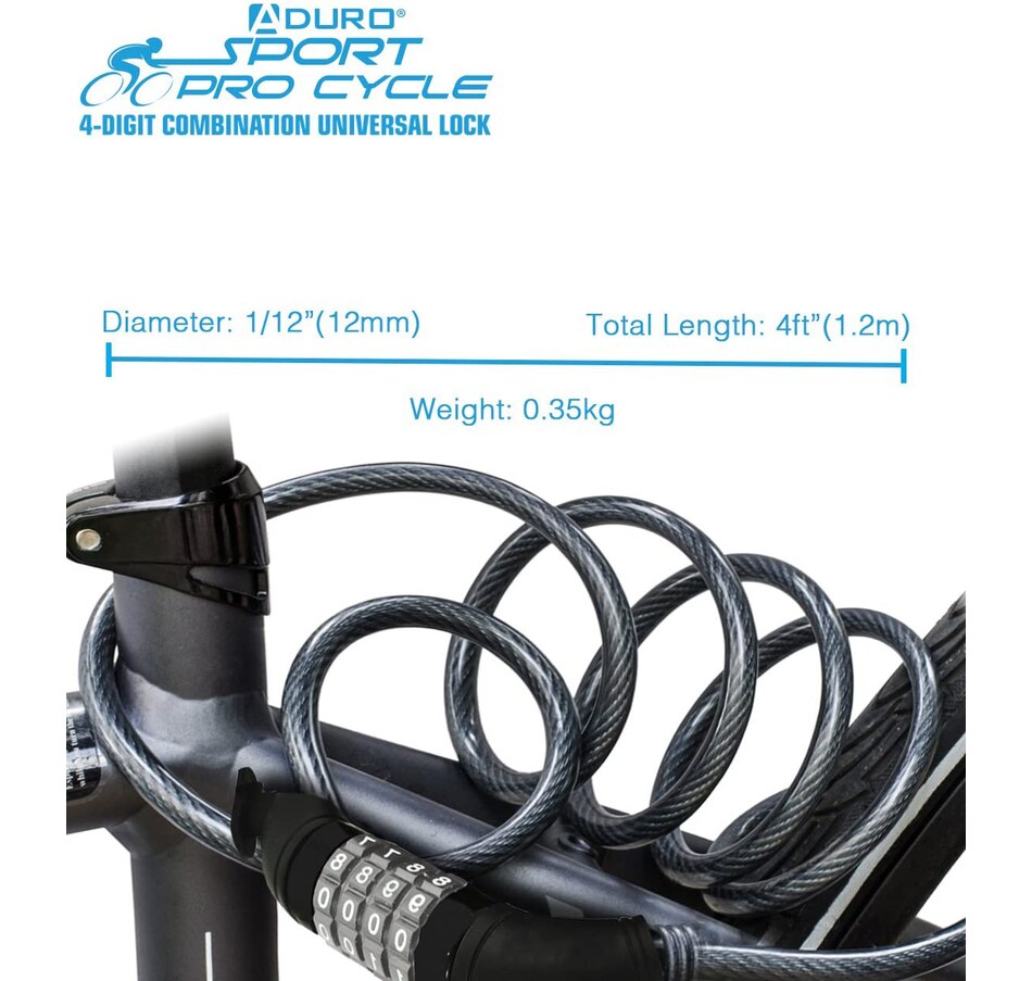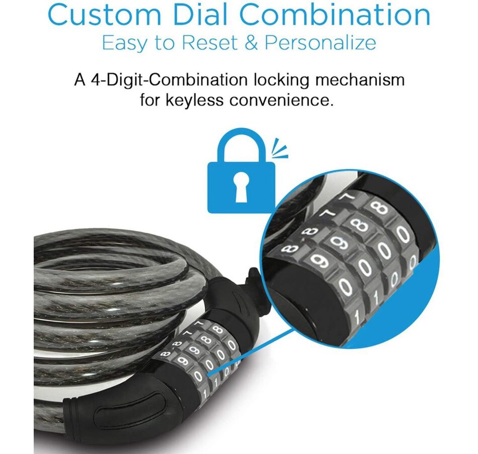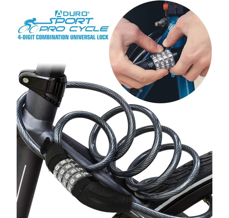• Aduro 4-digit Steel Wire Combo Lock; 4' or 6'