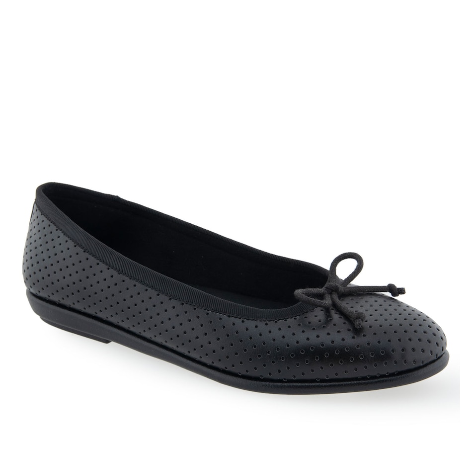 Step into effortless elegance with this classic ballet flat from Aerosoles. Designed with delicate perforated detailing, a rounded toe, and a charming bow accent, this shoe beautifully balances style and comfort. Its soft, flexible sole ensures all-day ease, making it a versatile staple for any wardrobe!