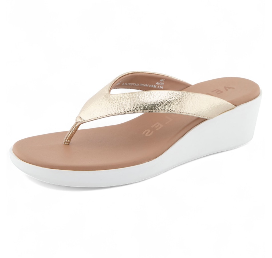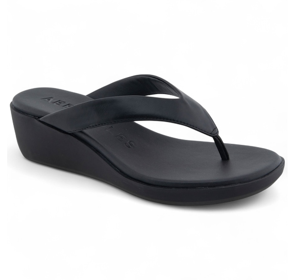 The Aerosoles Isha is an exquisite piece of footwear, crafted with a sleek thong upper and a cushioned footbed inset atop a molded, lightweight unit wedge. Its refined silhouette and superior durability make this sandal ideal for special occasions and everyday wear alike.