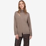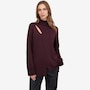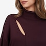 This loose-fit turtleneck top is composed of a soft, stretchy knit texture, and features a subtle shoulder slit detail. It finishes with an asymmetric hem with a small front slit.
