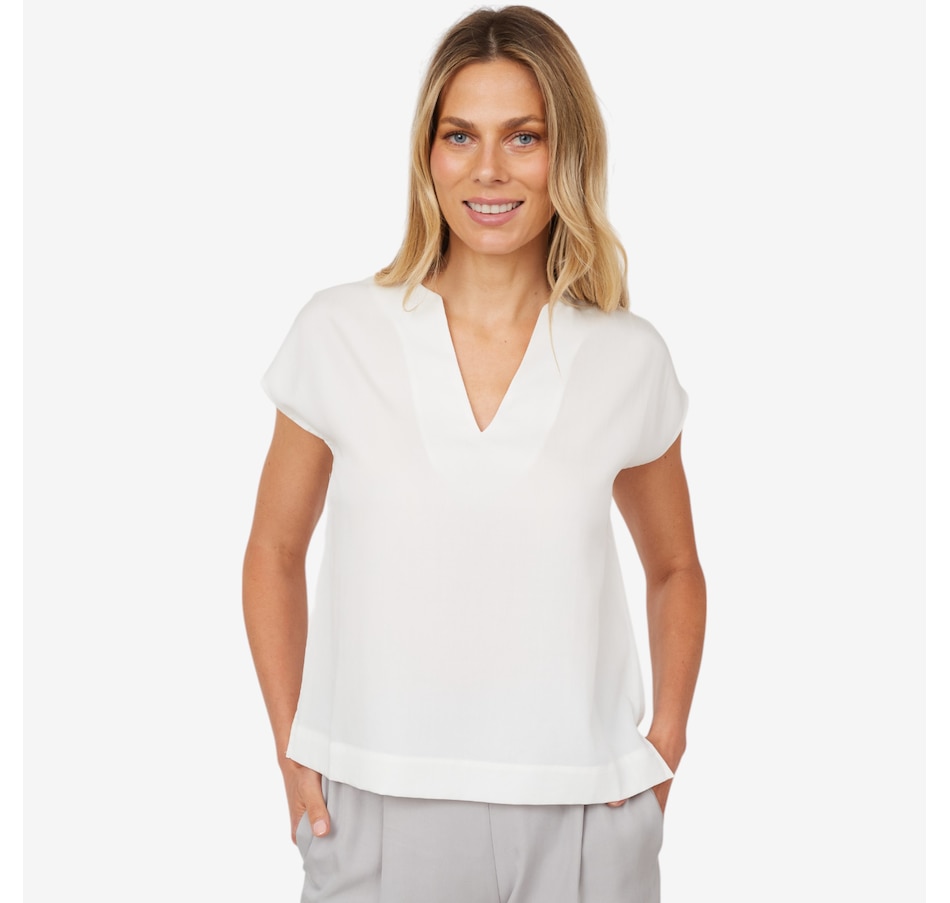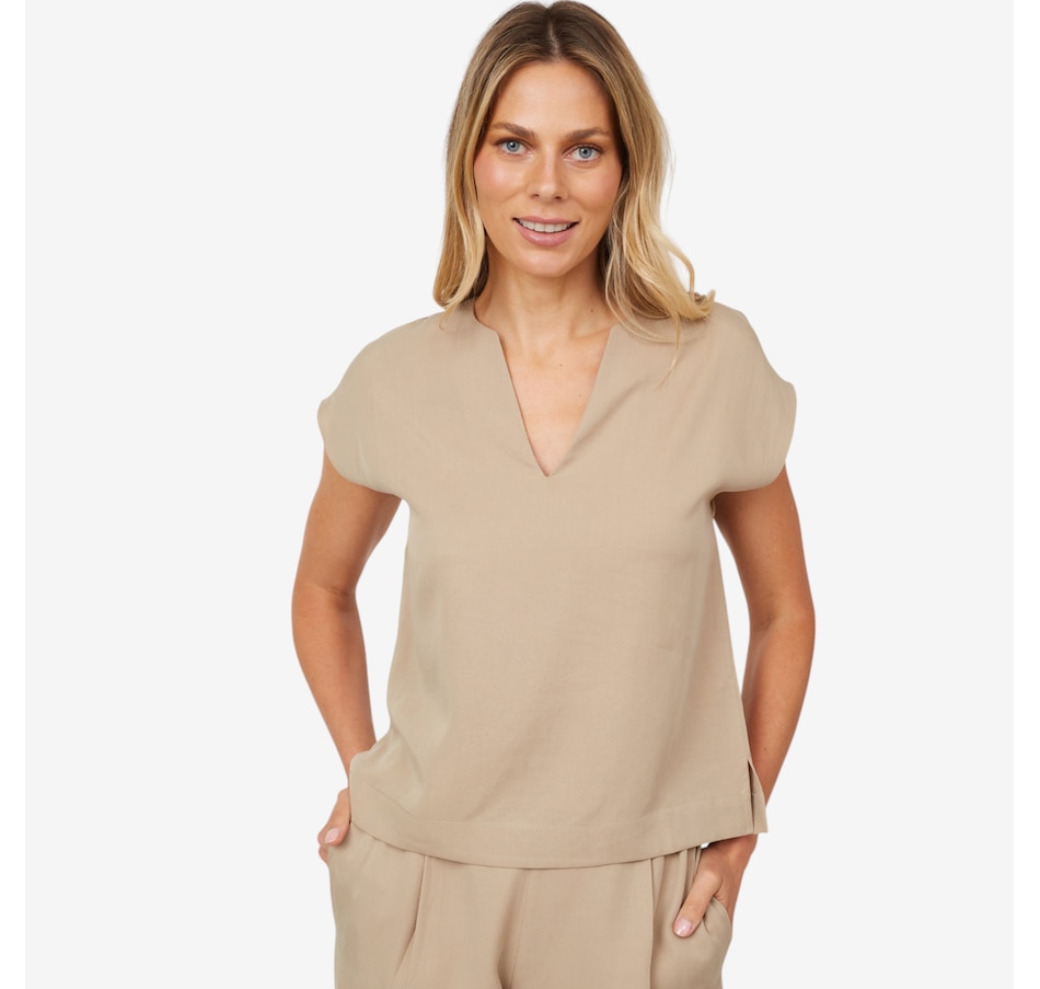 Centre every look in defined style wearing this beautiful tencel v-neck top from Aggel.