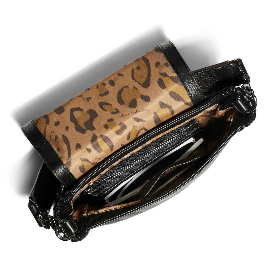 • Exterior: adjustable and removable crossbody strap, flap entry with magnetic snap, 1 back magnetic snap pocket