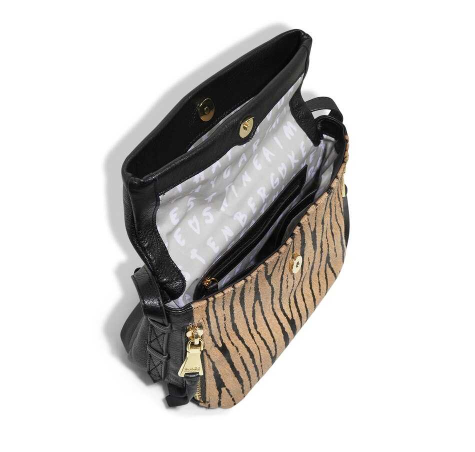• Exterior: signature double entry flap with hidden pocket, secure magnetic closure