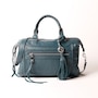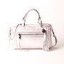 • Exterior: main entry zipper, double top handles, zip pocket, slip pocket (no magnetic snap), dome stud feet