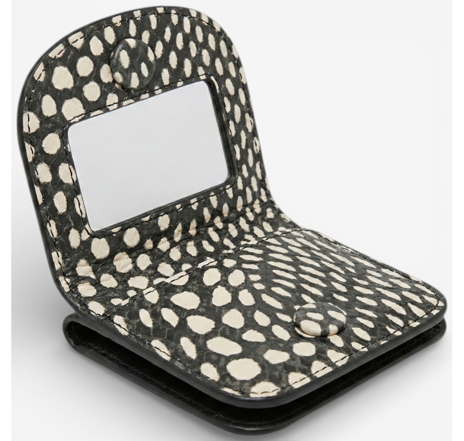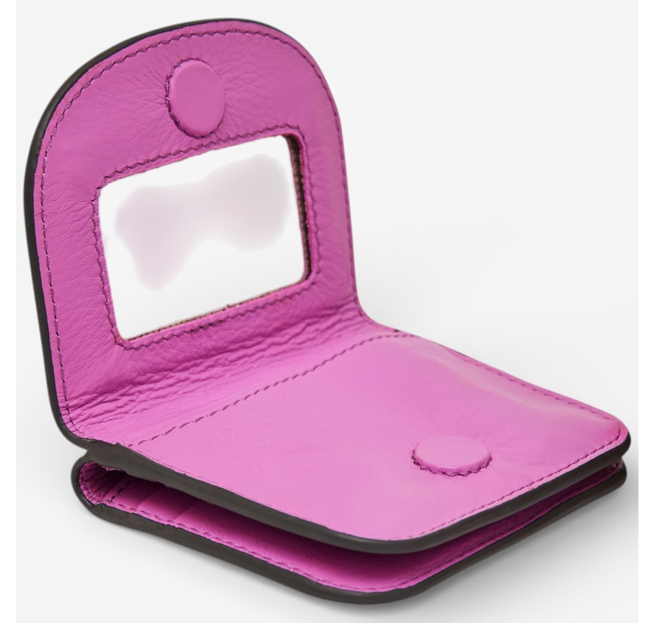 Add a little attitude and a lot of everyday brilliance to your essentials with the Aimee Kestenberg Pucker Up credit card wallet, a compact, cleverly designed accessory crafted from 100% genuine leather and available in a vibrant range of colours to match your mood. Finished with a signature branded hardware, this playful wallet keeps you effortlessly organized with six credit card slots, a front slip pocket, and a built‑in mirror for quick touch‑ups on the go. A convenient back coin zip pocket adds extra functionality without the bulk; it’s the stylish little sidekick that fits in any bag.