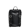 • (Exterior) custom hardware, large centre oversized zipper with security snap, back slip pocket with magnetic snap closure, adjustable shoulder straps