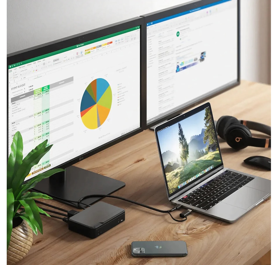 Dual Monitor Dock, 2x HDMI, USB-C/A, 4x USB-A, RJ45