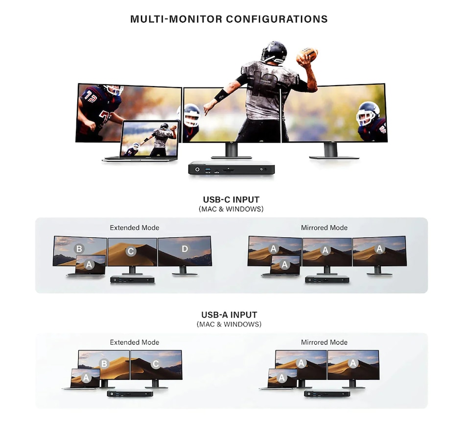 This dock can connect up to three monitors with three DisplayPort outputs for 4K Ultra HD (3840 x 2160) resolution, and USB-C connectivity.