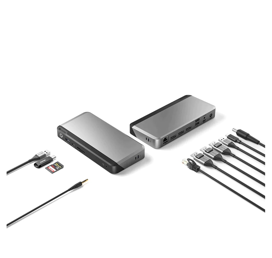• Ports: (1) USB-C upstream (for host connection, supports 100W PD); (3) DisplayPort 1.2 (4K 60 Hz); (4) USB-A 3.0 (5 Gbps); (1) USB-C 3.1 Gen 1 (5 Gbps, data only), (1) Gigabit Ethernet; (1) 3.5-mm audio combo jack (headphone/microphone); (1) SD card reader (UHS-I); (1) microSD card reader (UHS-I)