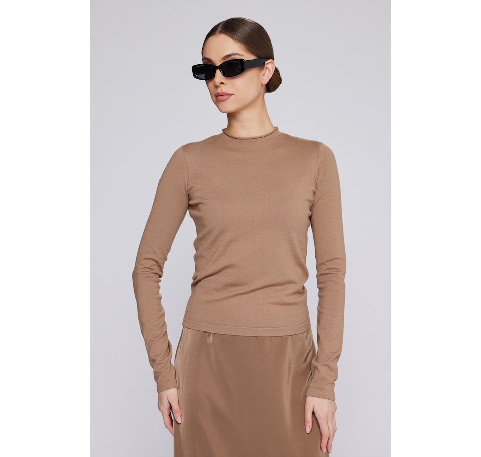 Centre your look in easy style with this mock neck long sleeve top from Amanda Maria.