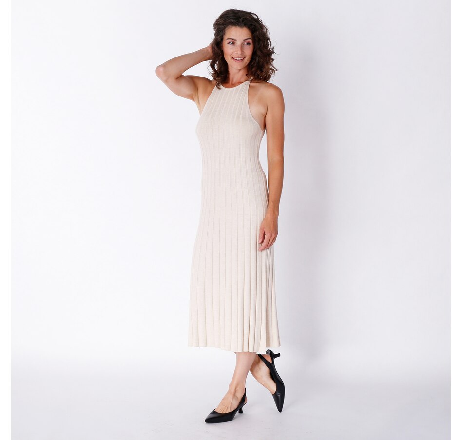 Add something distinct and vibrant to your look wearing this ribbed tank dress from Amanda Maria.