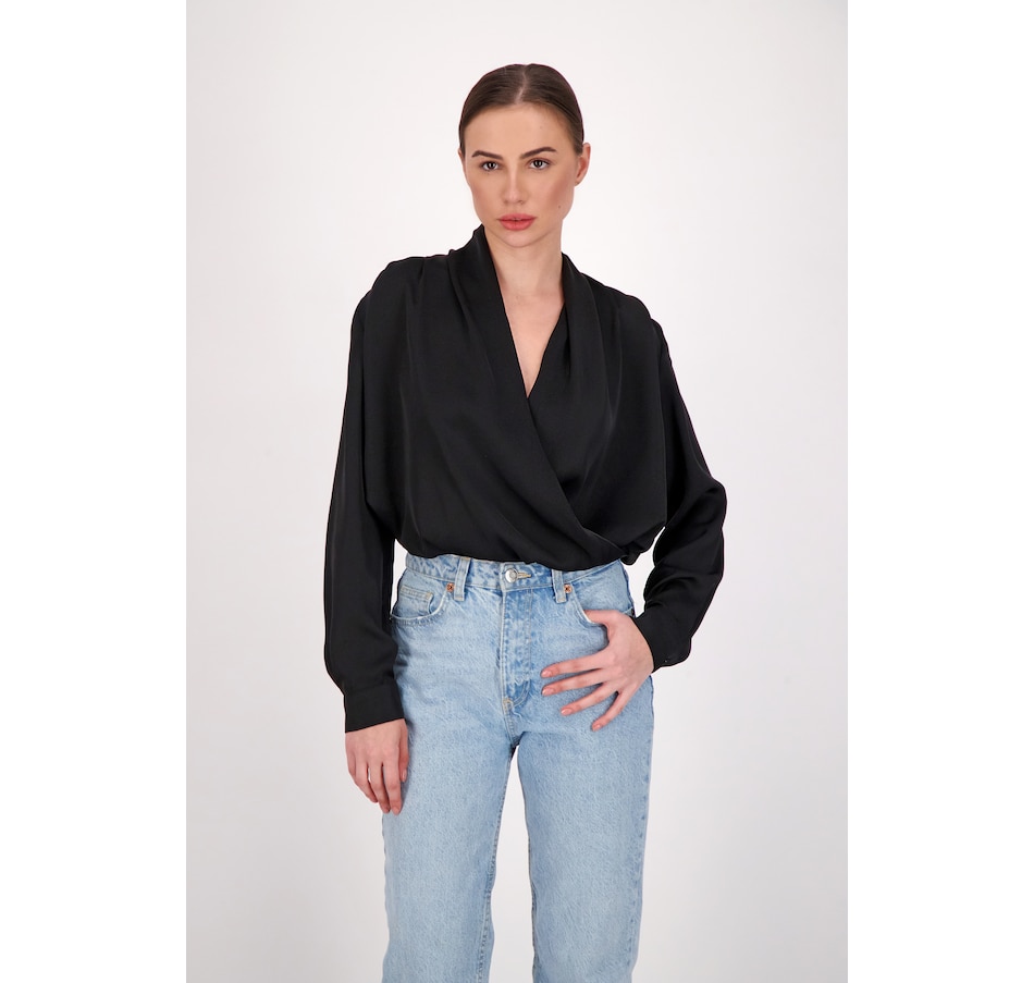 Elevate your look with something both versatile and eye-catching wearing this wrap top from Amanda Maria. It is recommended to wear this one at maximum style tucked in.