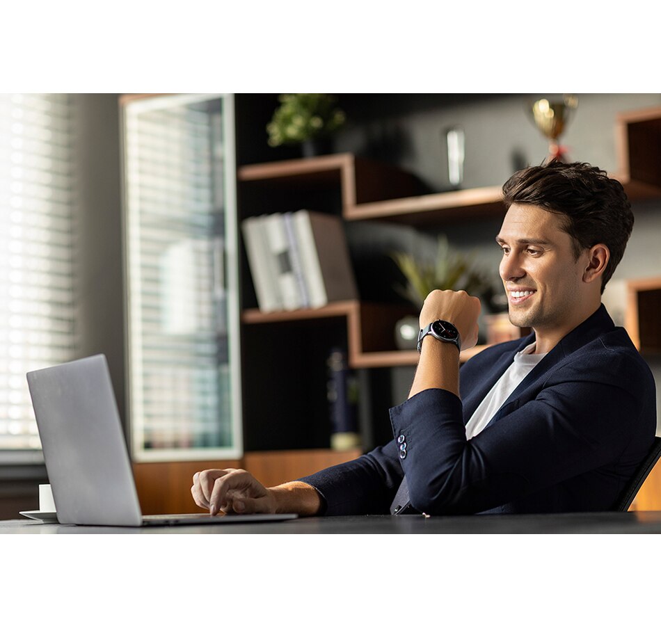 Improved haptic vibration delivers crisper, faster feedback when you receive notifications. Thanks to the haptic linear motor, vibrations can be set with a variety of durations, delivering a premium feel. The screen can rotate to 180 degrees, convenient for both left- and right-handed users, and can be locked with a password to prevent it from being accessed while not on your wrist. The wear detection ability can even automatically lock the watch when you take it off.