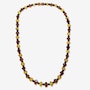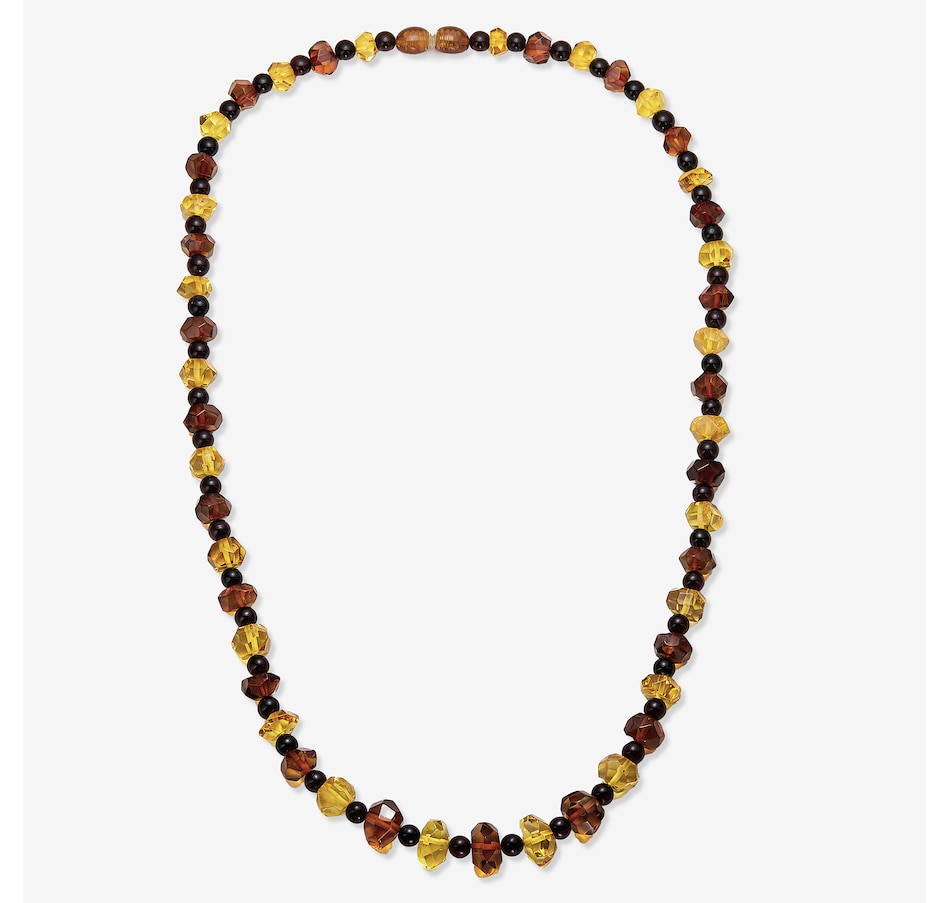 This necklace highlights the natural beauty of faceted amber beads, showcasing a rich mix of colours and organic variation. The rounded forms and polished facets catch the light beautifully, creating a warm, expressive look. Distinctive and easy to wear, it’s a timeless piece that celebrates the character and individuality of amber.