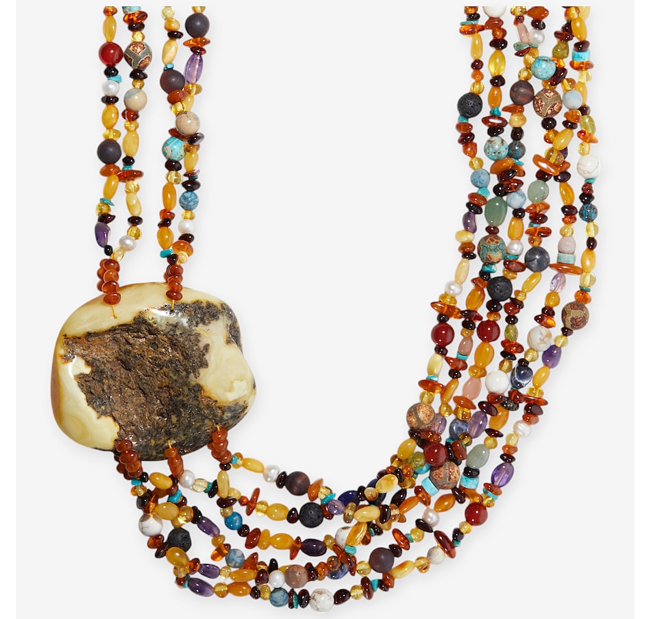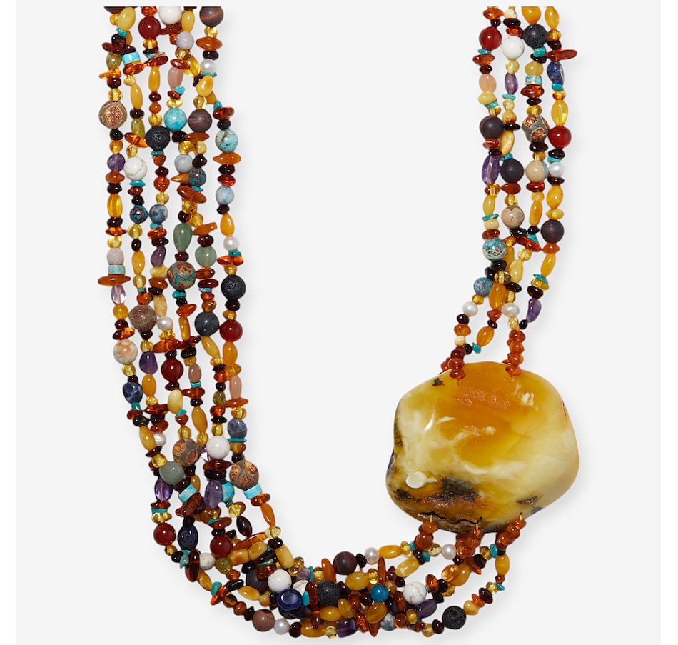 Centre your look in defined, bright beauty wearing this multi-gemstone amber necklace from Amber Extraordinaire.