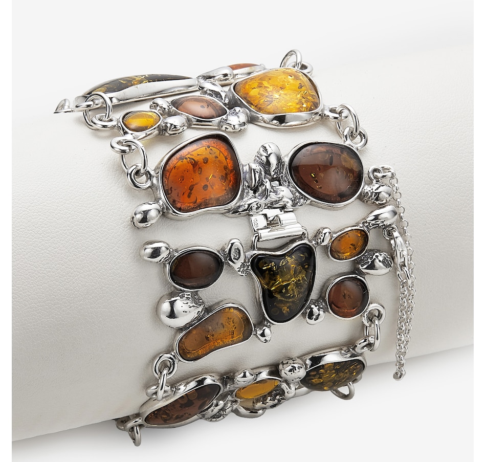 Handmade Collection Multi Amber Stone Wide Bracelet