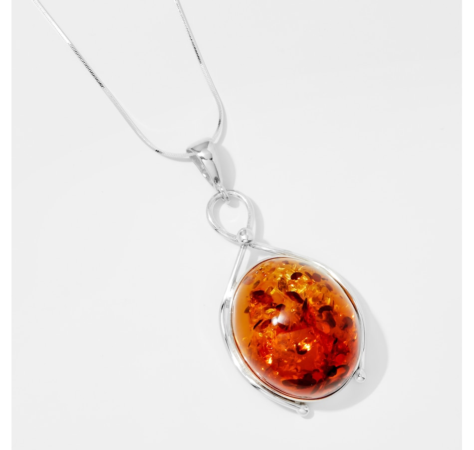 Beautiful and vibrant, you'll finish every look in style with this gorgeous domed amber pendant necklace from Amber Extraordinaire.