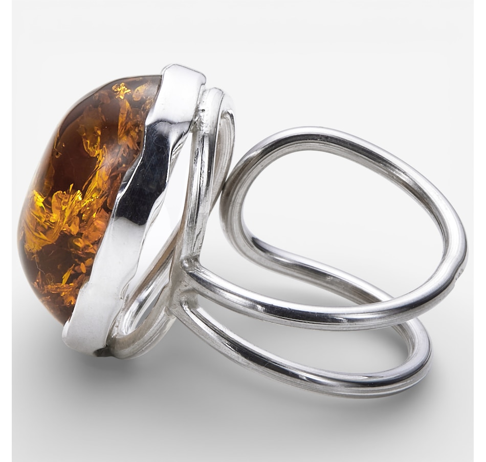 Sterling Silver Amber Adjustable Ring