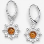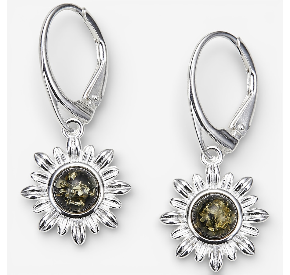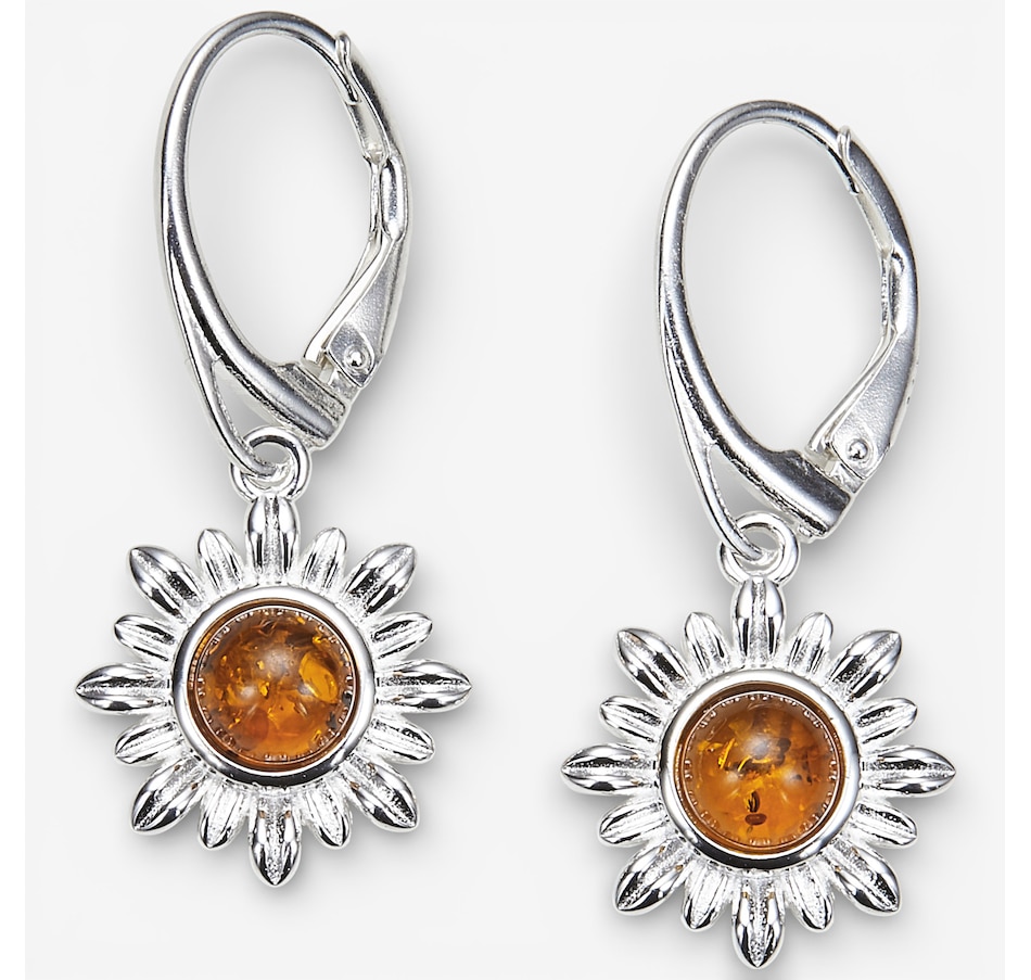 Add a touch of natural beauty and timeless charm to your look with these sterling silver amber flower earrings, designed to glow with warm, organic elegance. Featuring your choice of rich cognac or vibrant green amber, each earring showcases a 6mm round, bezel‑set faceted stone that catch the light with every movement. The floral-inspired design brings a soft, feminine feel, while the drop creates graceful presence without feeling heavy. Finished with secure leverback closures for comfortable, all‑day wear, these earrings are as practical as they are beautiful.