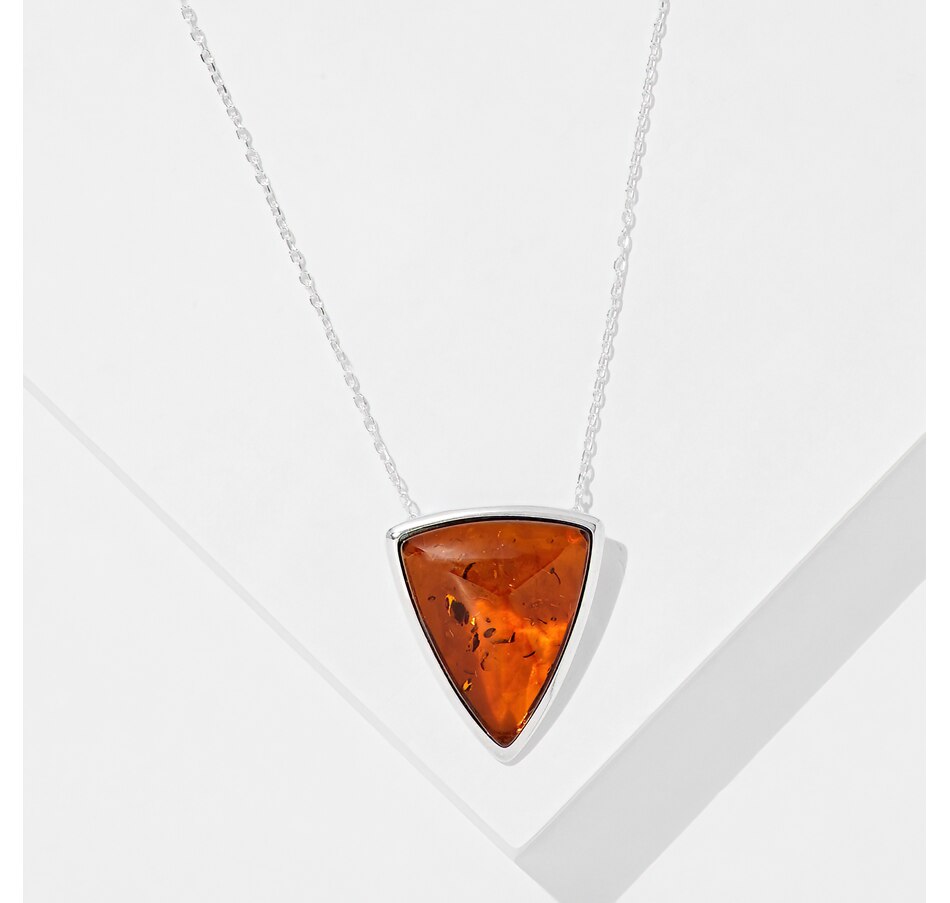 Sterling Silver Baltic Amber Trillion Pendant with Chain