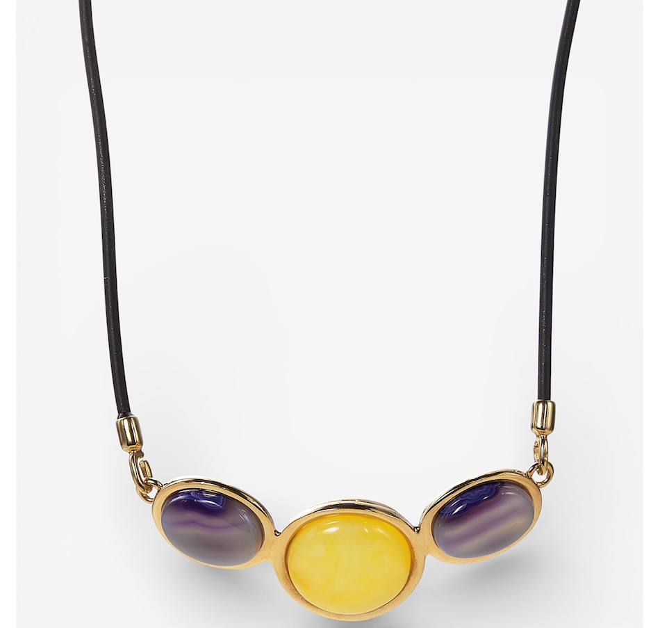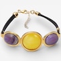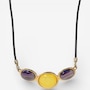 Indulge in rich colour and timeless elegance with this choice of a beautifully crafted sterling silver butter amber and amethyst necklace or bracelet, an exquisite expression of natural luxury. Each piece features a luminous round butter amber glowing with a soft golden warmth, beautifully complemented by two faceted oval amethysts that add a regal touch of violet sparkle. Bezel‑set for a smooth, refined finish, the gemstones showcase a striking balance of warmth and contrast that feels both sophisticated and wearable. Please note that because every gemstone is naturally unique, no two pieces are exactly alike.